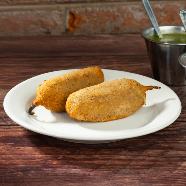 Deléitate con dos chiles cuaresmeños desvenados, generosamente rellenos de queso gouda y empanizados a la perfección. Una combinación irresistible que ofrece un crujiente exterior y un cremoso interior, perfecta para compartir o disfrutar solo.