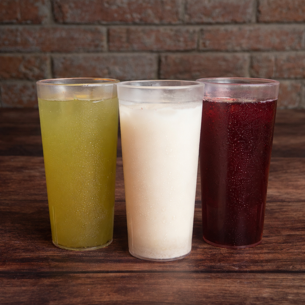 Refresca tu día con 500 ml de agua fresca, disponible en sabores a elegir: horchata, jamaica o limón con hierbabuena. ¡El acompañamiento ideal para cualquier comida!