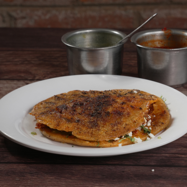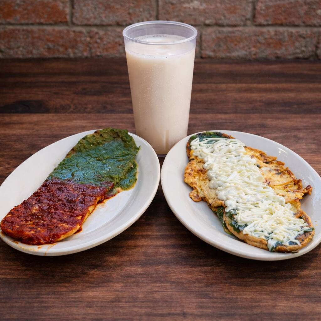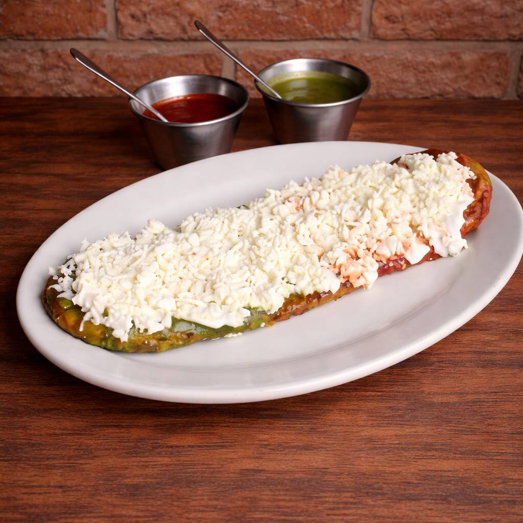 Una base de masa de maíz rellena de frijol, acompañado con nopales asados y queso panela, ofreciendo un sabor bajo en grasa. No te quedes con las ganas de probar esta opción ligera, junto con tu salsa preferida, escoge entre verde, roja o campechana