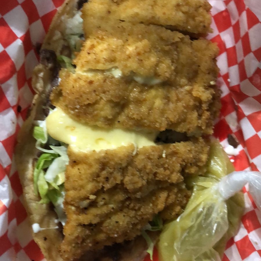 Tortilla de maíz 30cm con frijoles , lechuga y pechuga rellena de queso manchego.