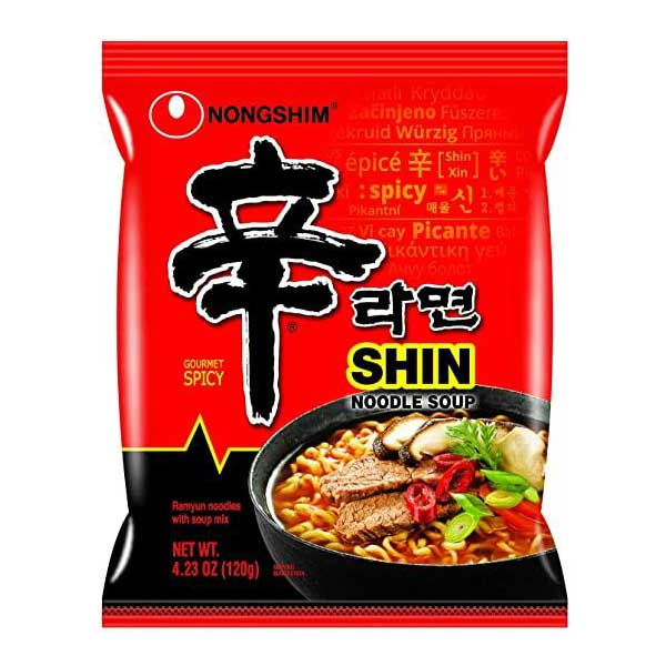 Sopa de fideos instantánea clásica y la más famosa de Corea, elaborado con salsa Shoyu, setas shitake, puerco, zanahoria, cebollín en rodajas y guindilla coreana.