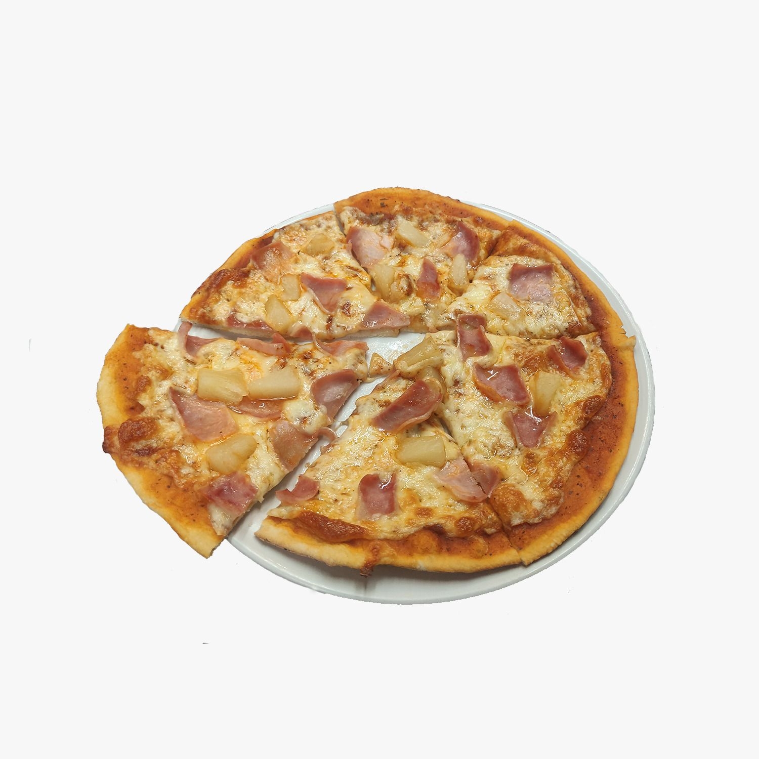 8 Rebanadas, Rebanadas de jamón, frescos cubos de piña y queso.