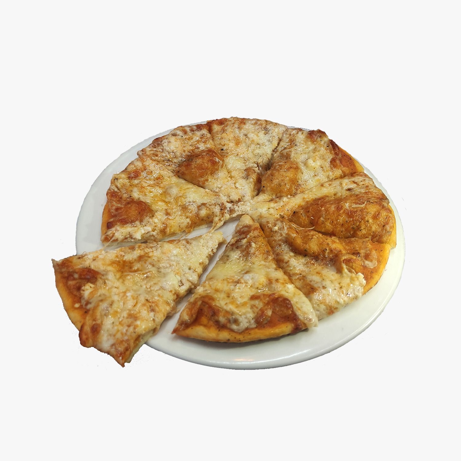 8 Rebanadas, Ajo rostizado, cubos de pollo a la plancha, cebolla, perejil y queso.