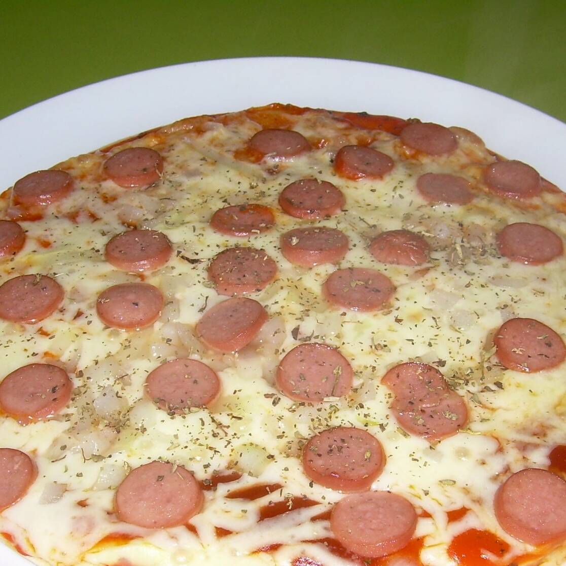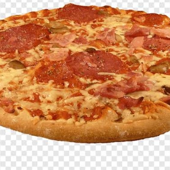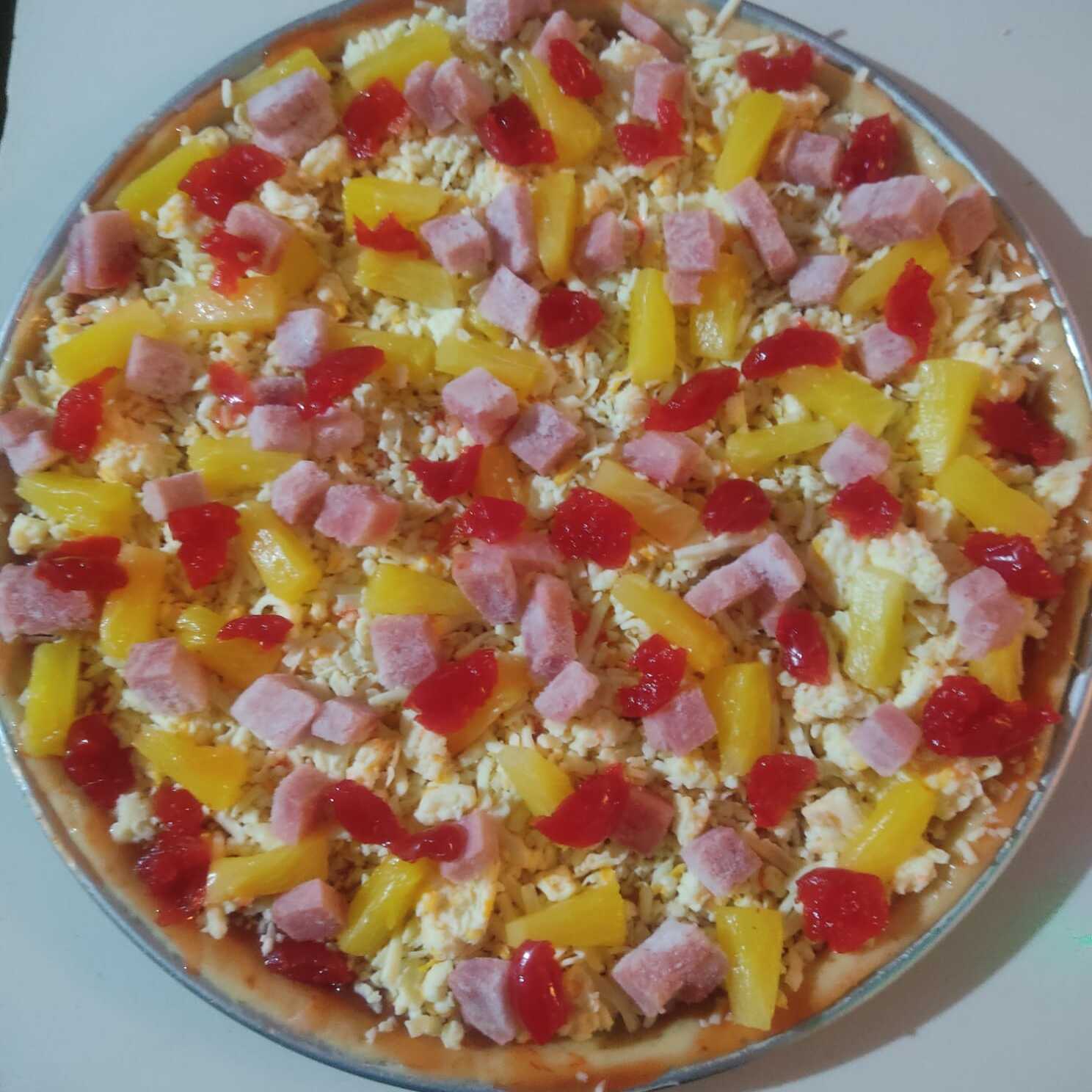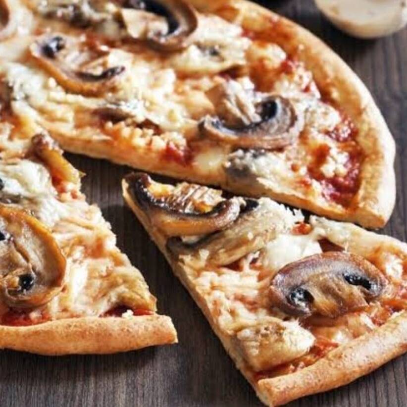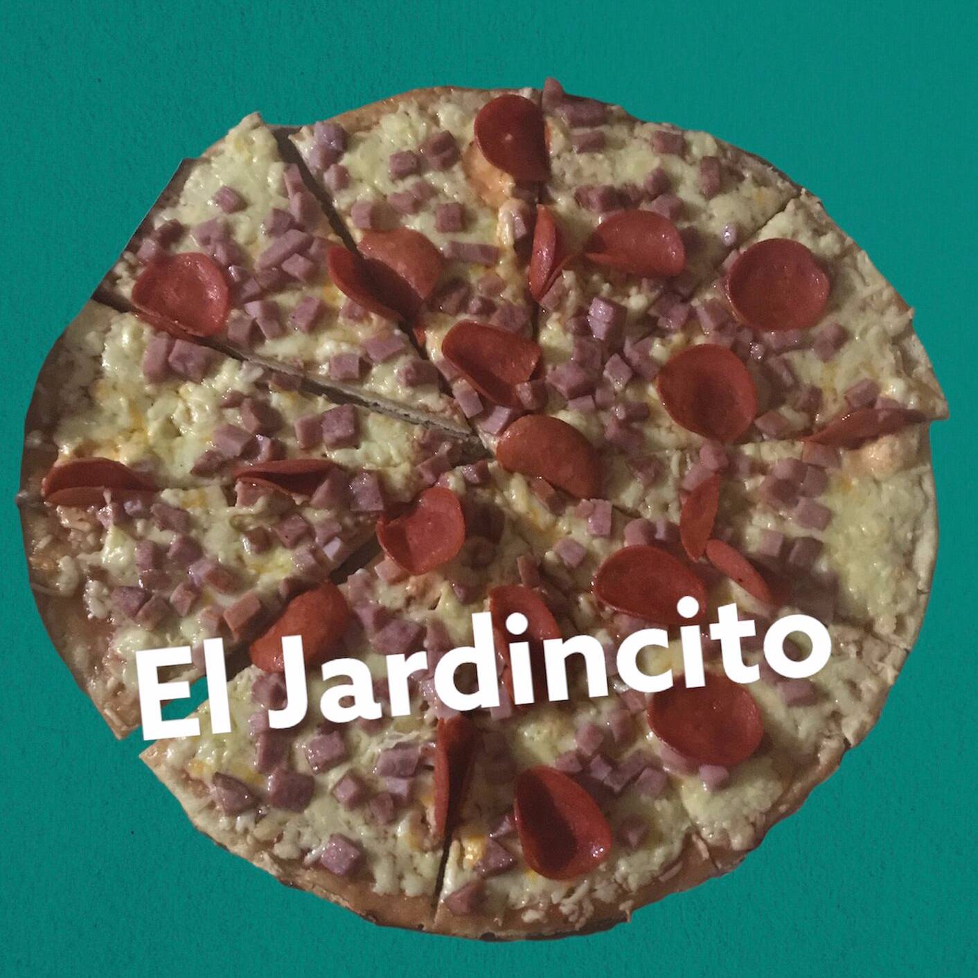 Pizza de Tocino, frijoles, jalapeño, cebolla, champiñones y queso