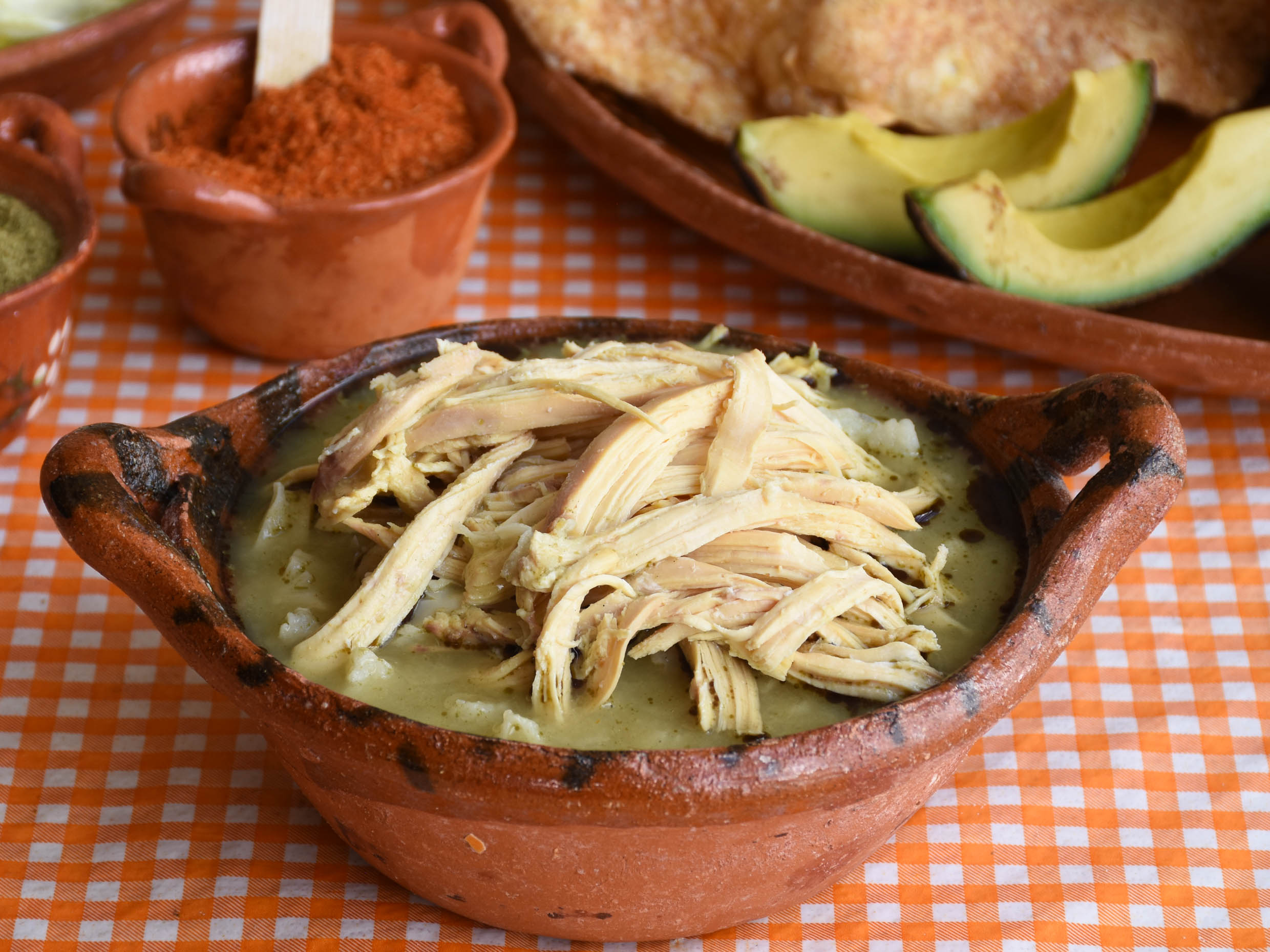 Incluye chicharrón, aguacate, tostadas, cebolla, limones, chile molido y orégano. (1.5 L Para máx. 2 personas)