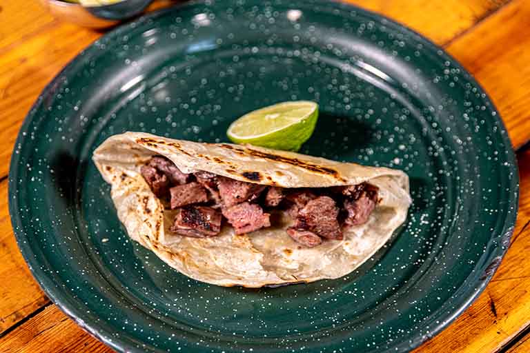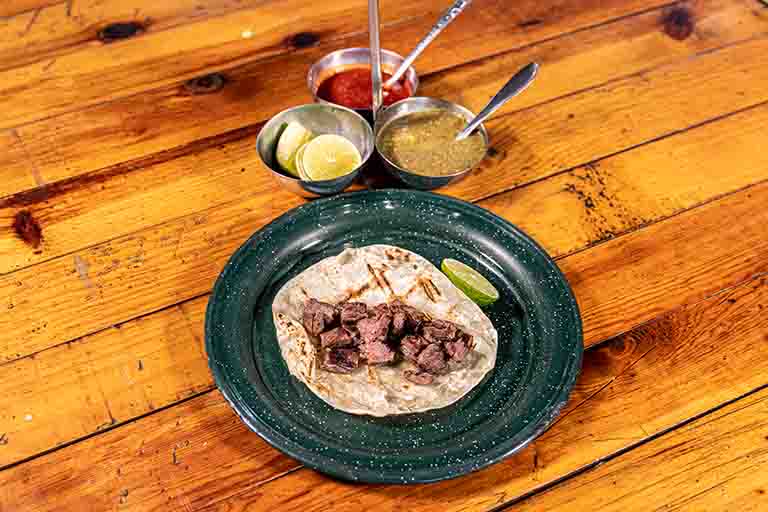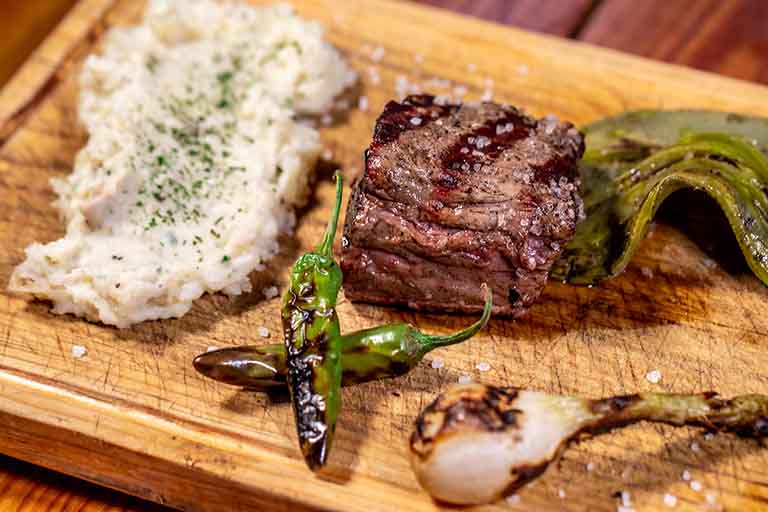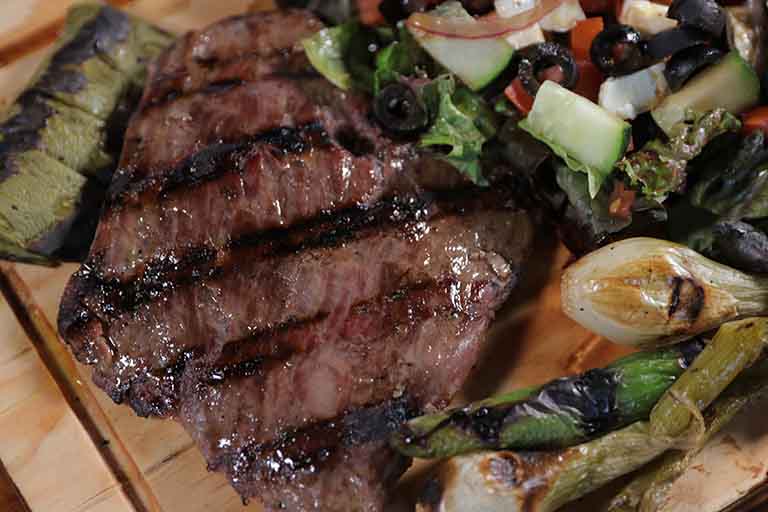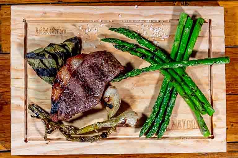 220 gramos de carne acompañada de nopal asado, cebolla y chile toreado. Incluye guarnición sin costo adicional.