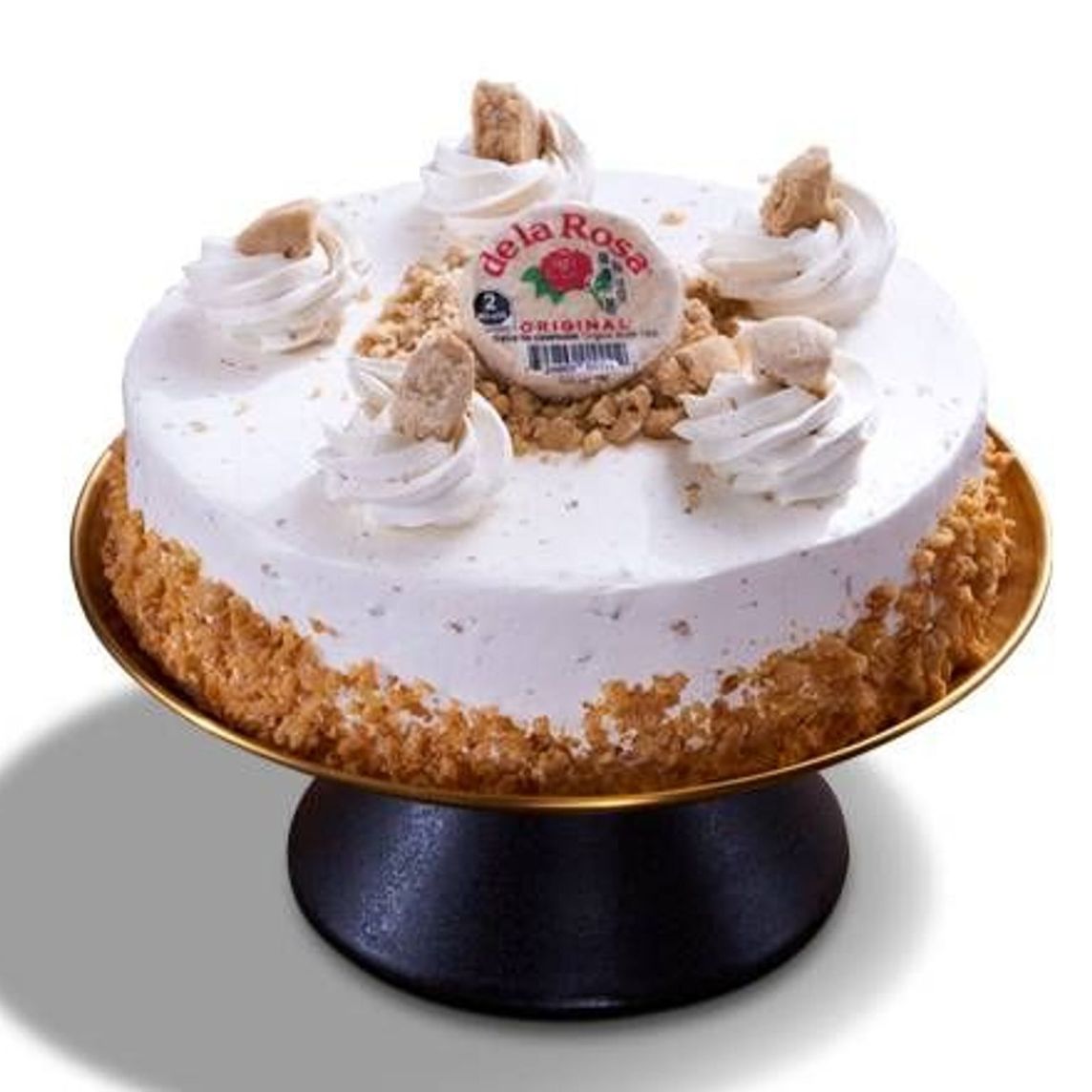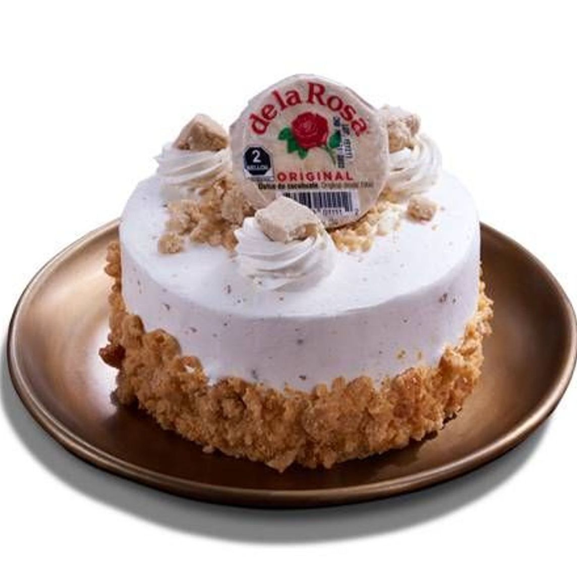 Delicioso pastel inspirado en el original dulce de mazapán de la rosa, compuesto por un cremoso bizcocho de vainilla, crema batida de mazapán y streussel de mazapan.