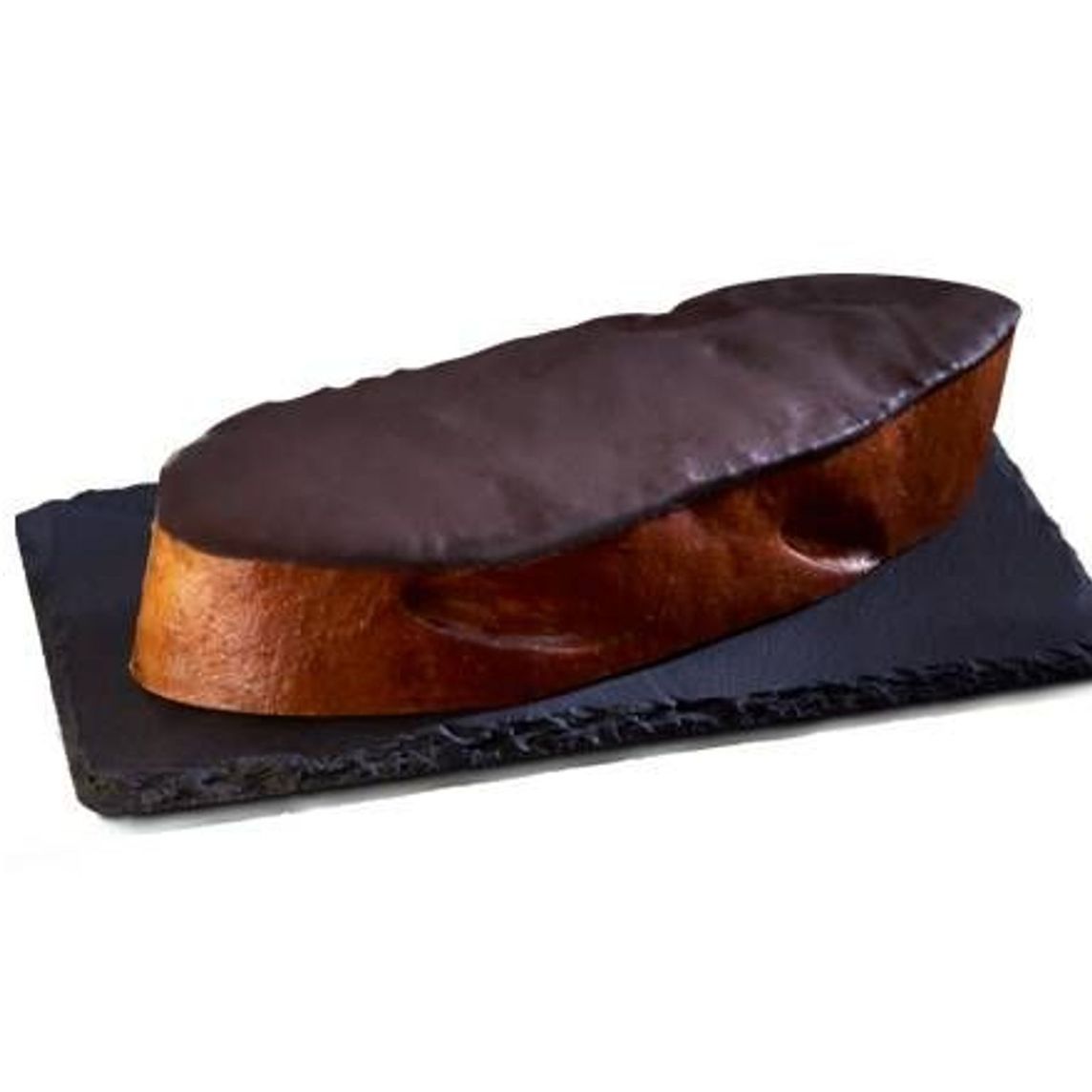 Deliciosa berlinesa clásica rellena de crema pastelera, decorada con cobertura sabor chocolate.