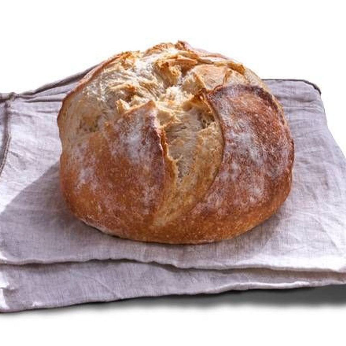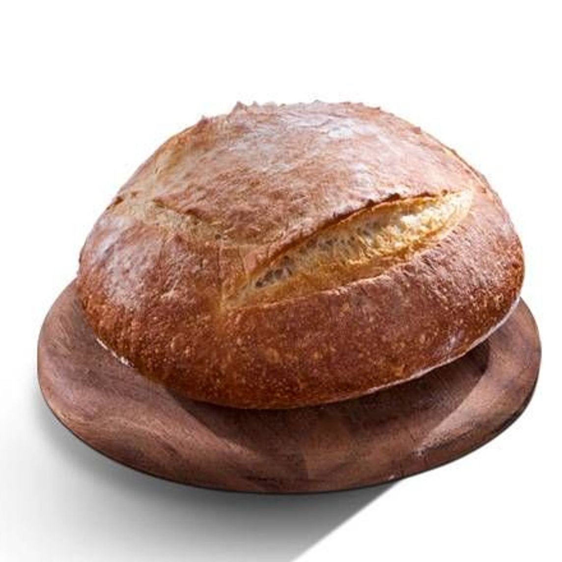 Pan rústico tradicional con corteza delgada crujiente y miga suave con sabor ligeramente ácido y salado.