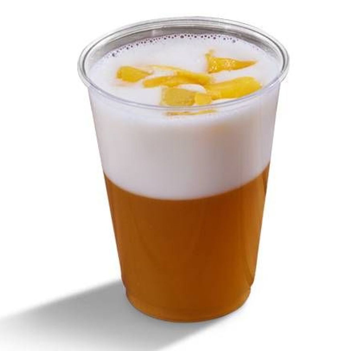 Deliciosa gelatina con trozos de mango encapsulados en gelatina de yogurt natural y una capa de gelatina de agua con pulpa de mango.
