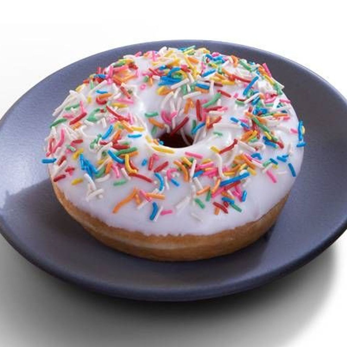Deliciosa dona decorada con fondant blanco y granillo de colores.