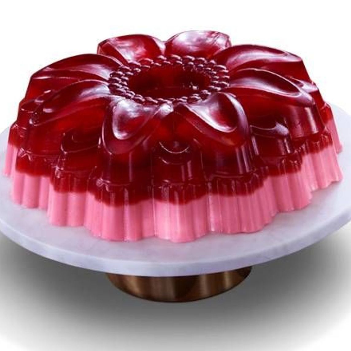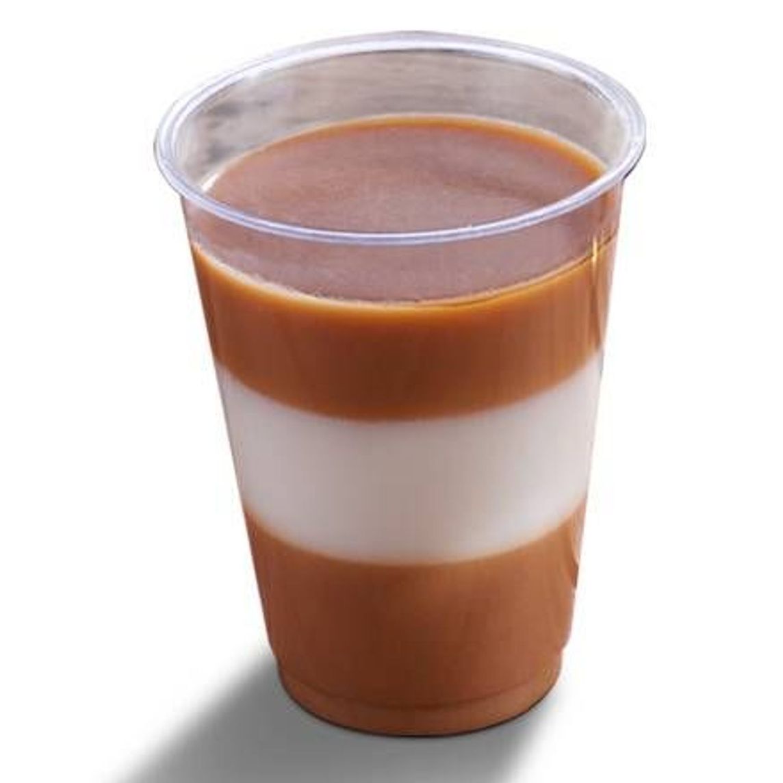 Deliciosa gelatina de leche sabor cajeta, rellena de gelatina de leche sabor vainilla en forma de rosca.