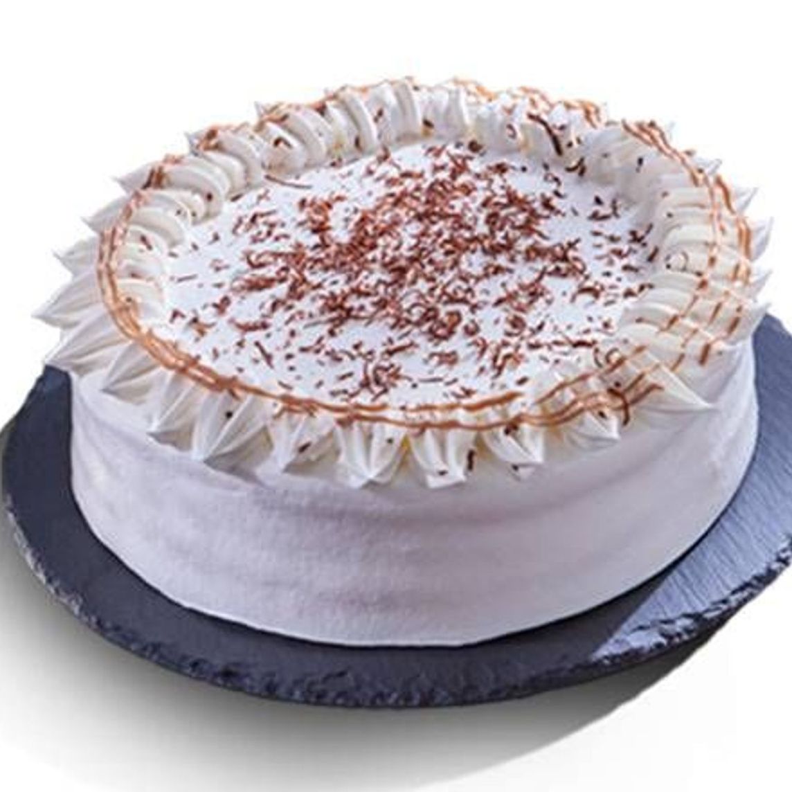 Tradicional pastel de 3 leches, pan esponja de vainilla y suave crema batida, decorado con cremoso ganache de chocolate y chocolate rallado.