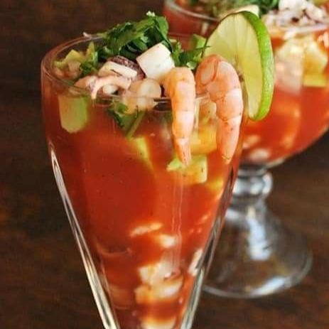 Elige y mezcla entre camarón, pulpo u ostión, preparado con jitomate, cebolla, cilantro y aguacate, bañado en una salsa a base de catsup, limón y un toque de picante. refrescante y lleno de sabor.