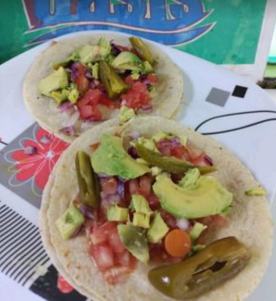 Lechuga, aguacate, jitomate, cebolla, queso, salsa.