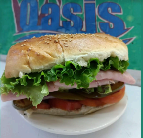 Pan integral, frijoles, jitomate, cebolla, aguacate, rajas, jamón de pierna, tocino queso Oaxaca, tocino y lechuga, mayonesa,