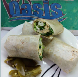 Tortilla de harina, frijoles, pollo asado, queso Oaxaca, lechuga, rajas o guacamole.