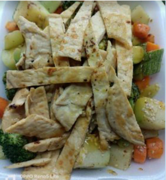 Calabaza, zanahoria, chayote, ejotes, chícharo, elote, brócoli, pollo ala plancha asado y crema de ajo.