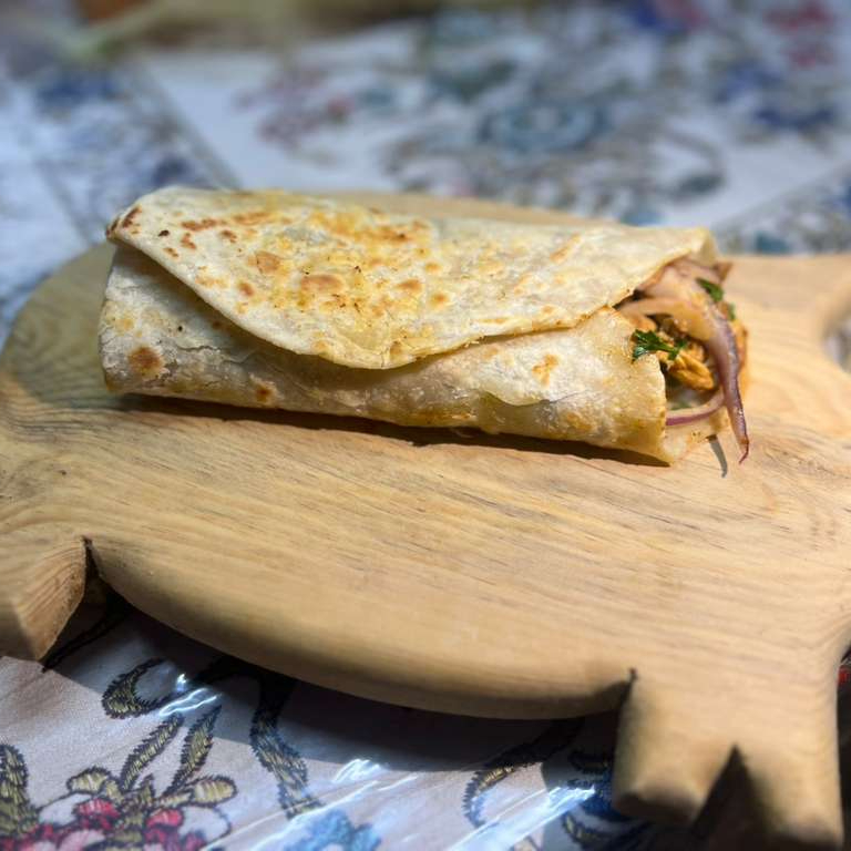 Delicios ternera marinada y sazonada con especias, base de lechuga, jitomate en cubos sazonados con Massala, cebolla morada, pepinillos, base de salsa de ajo con yogurt y salsa al gusto.