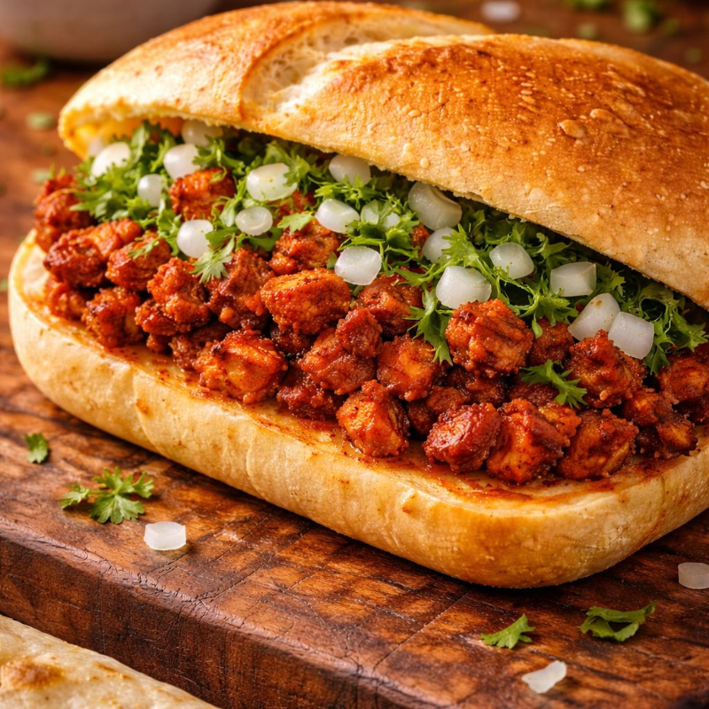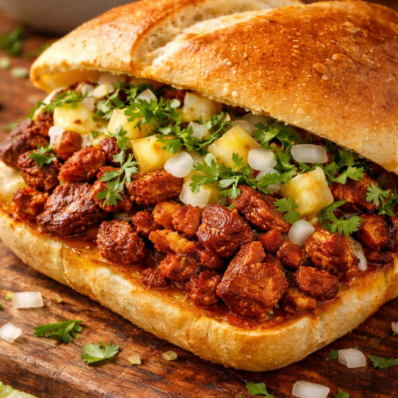 Deliciosa Torta de Pastor preparada con bolillo o telera regular