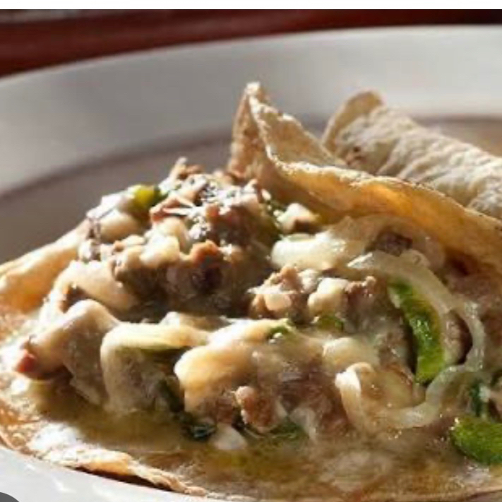Deliciosos chilaquiles 6x6 en salsa verde con bistec