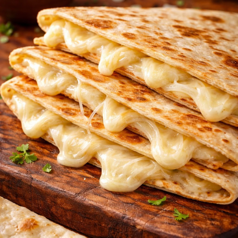Deliciosas quesadillas de queso Oaxaca preparadas en tortilla de harina