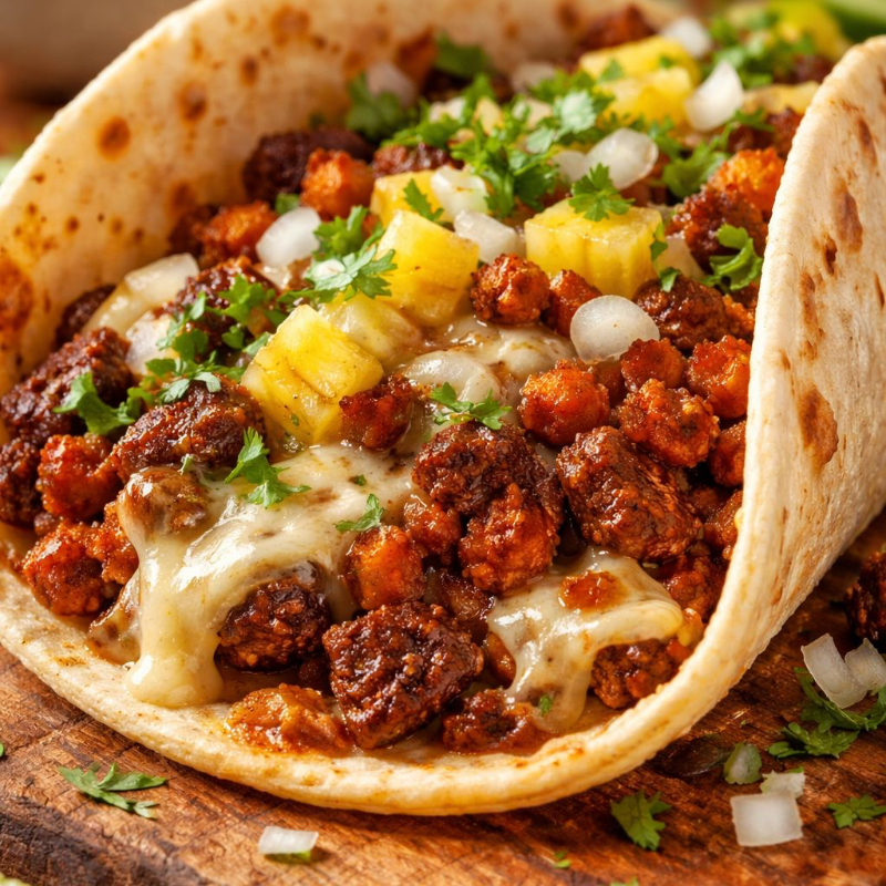 Taco de Pastor con Queso en Tortilla de Harina
