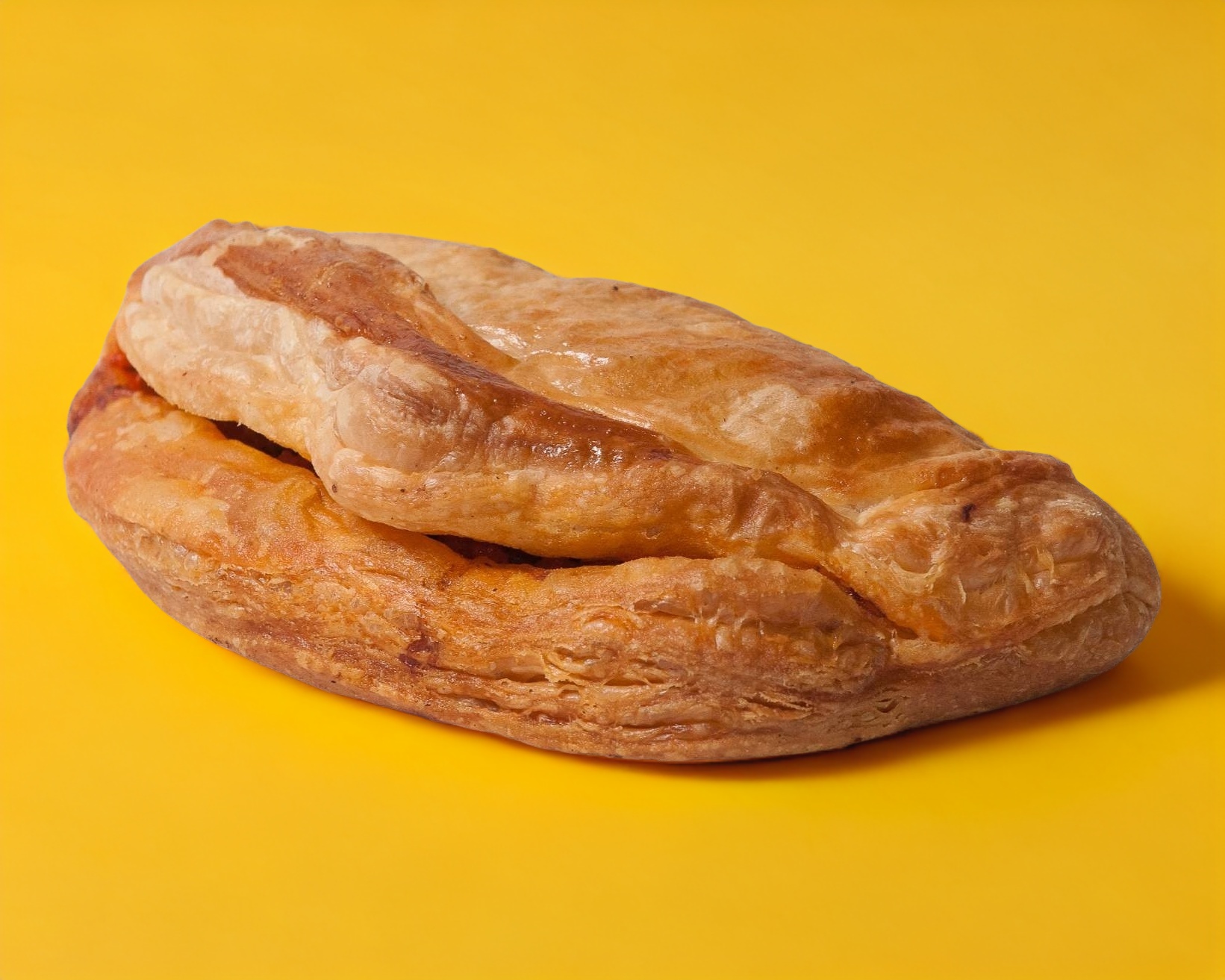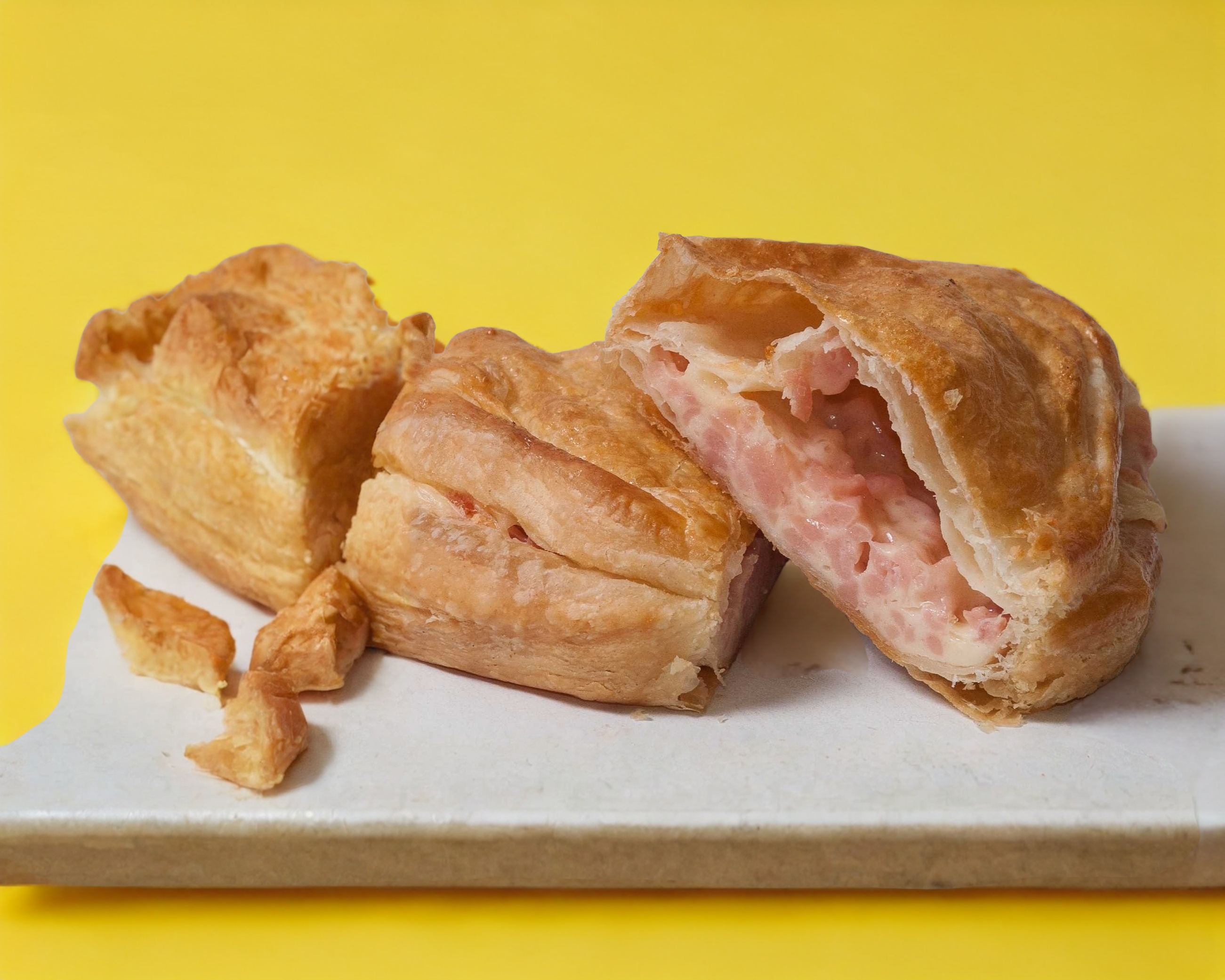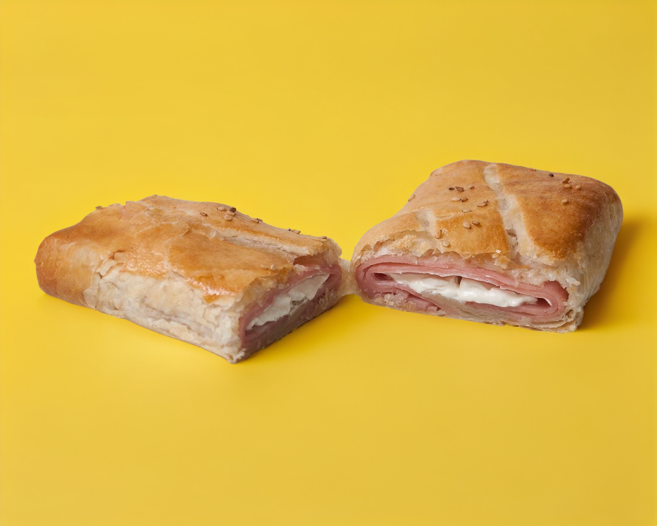 1 Rollo de pasta de hojaldre, relleno de 2 tajadas de jamón y un trozo de queso crema envueltos.