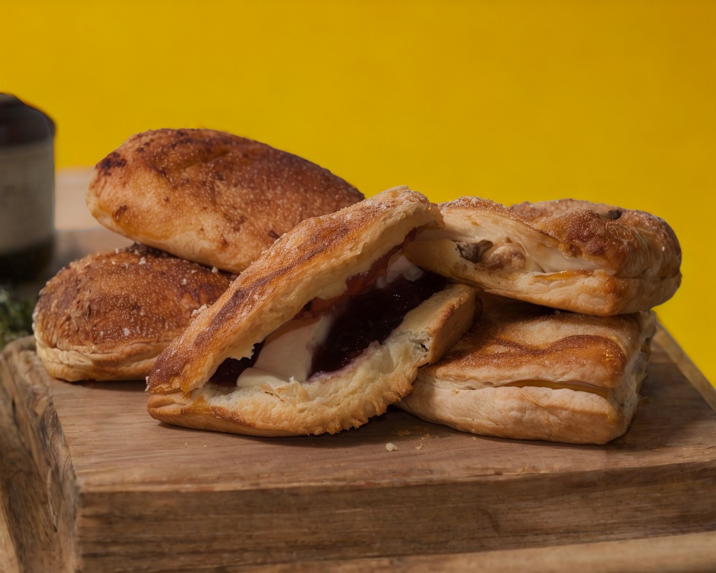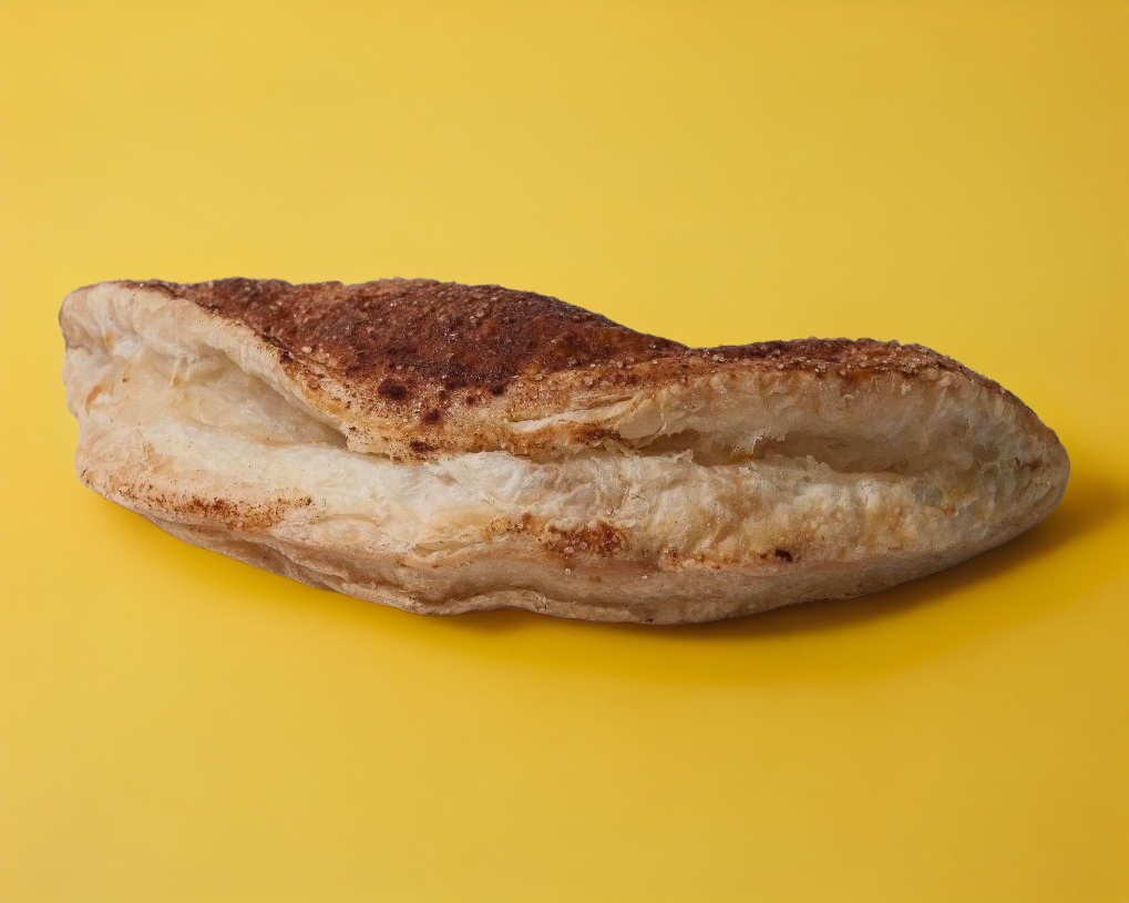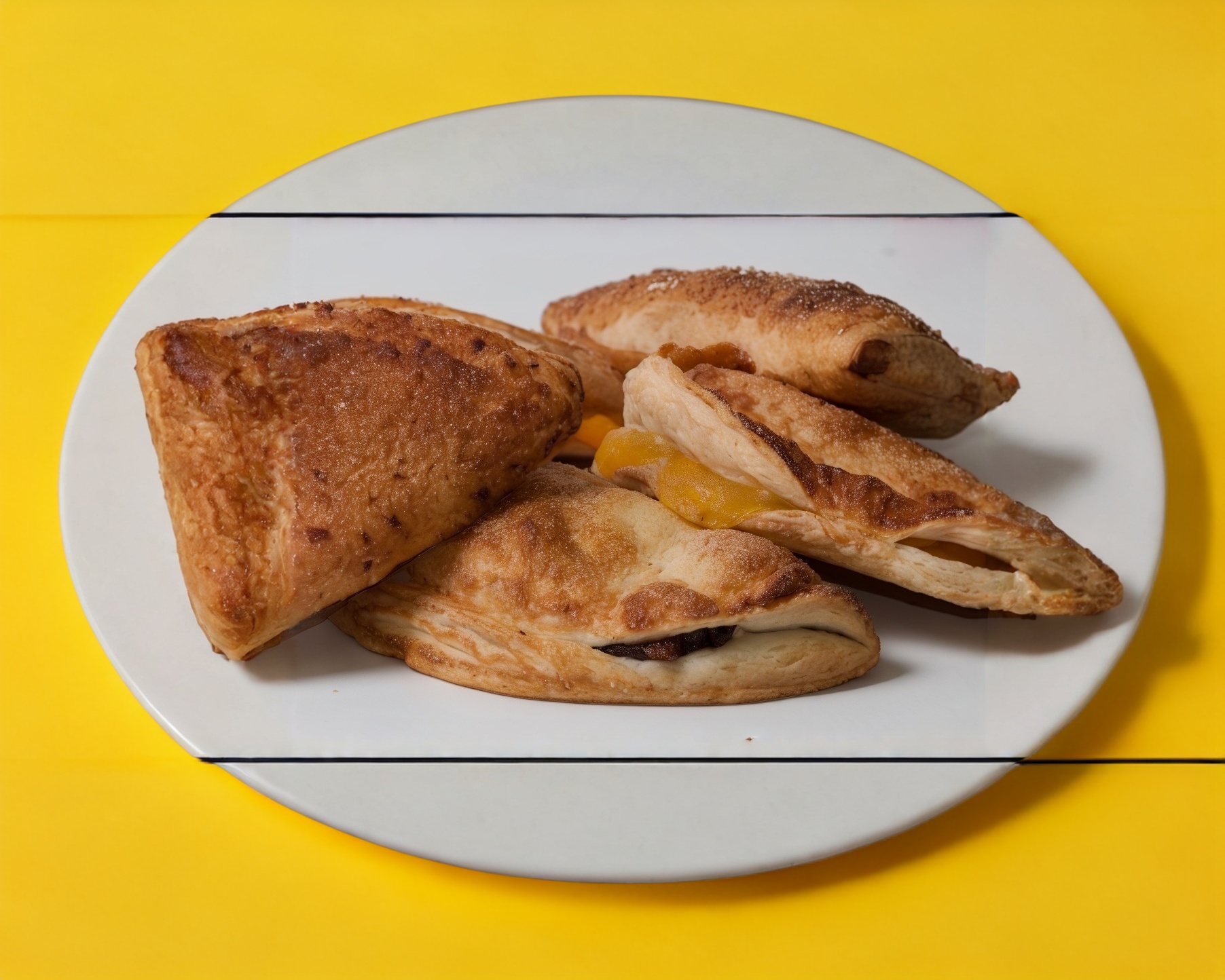 1 Rollo de pasta de hojaldre, relleno de 2 tajadas de jamón y un trozo de queso crema envueltos.