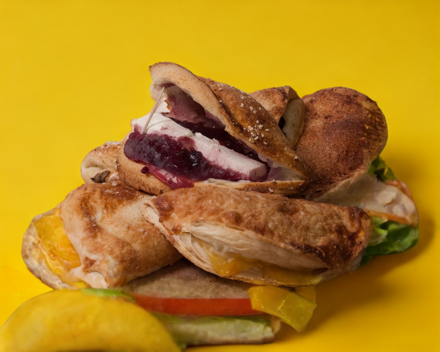Jamón de pavo, queso manchego, piña en almibar, aderezados con salsa catsup y salsa ....