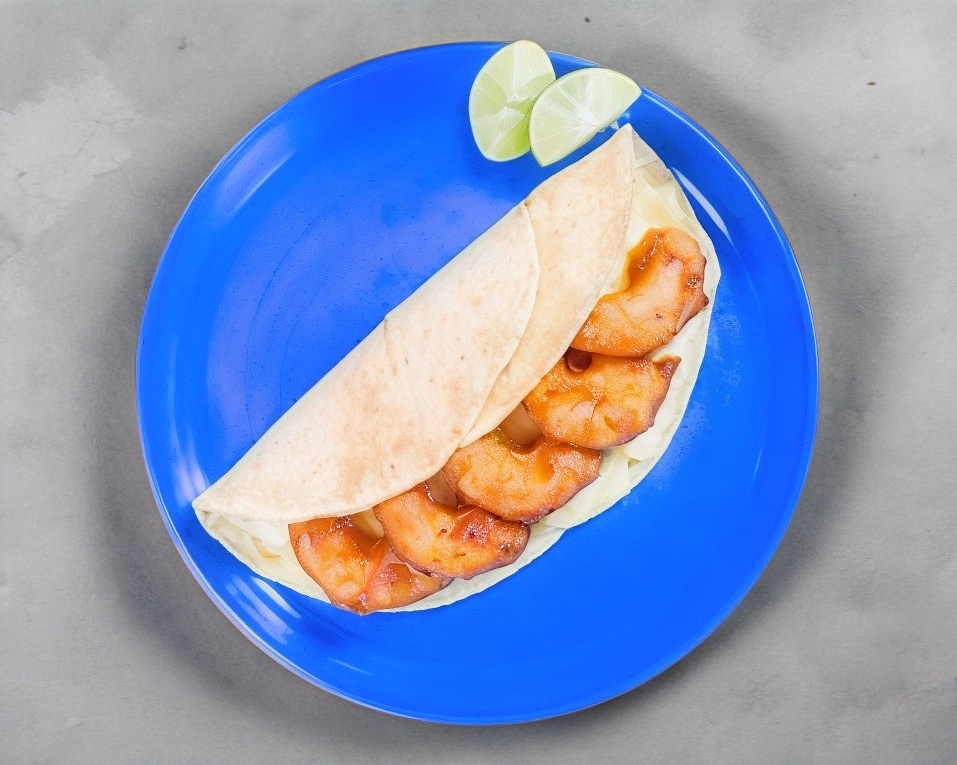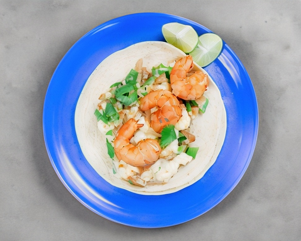 Rico taco a la plancha con queso y camarón. ¡Te morirás de emoción!