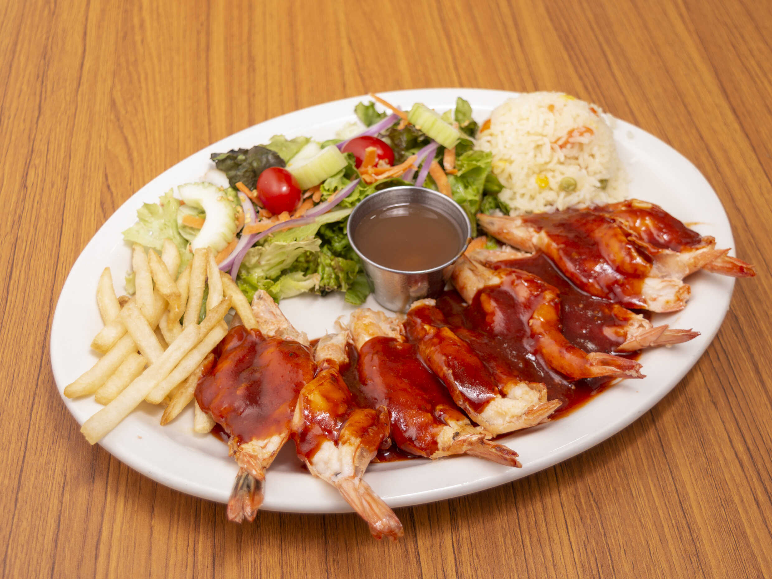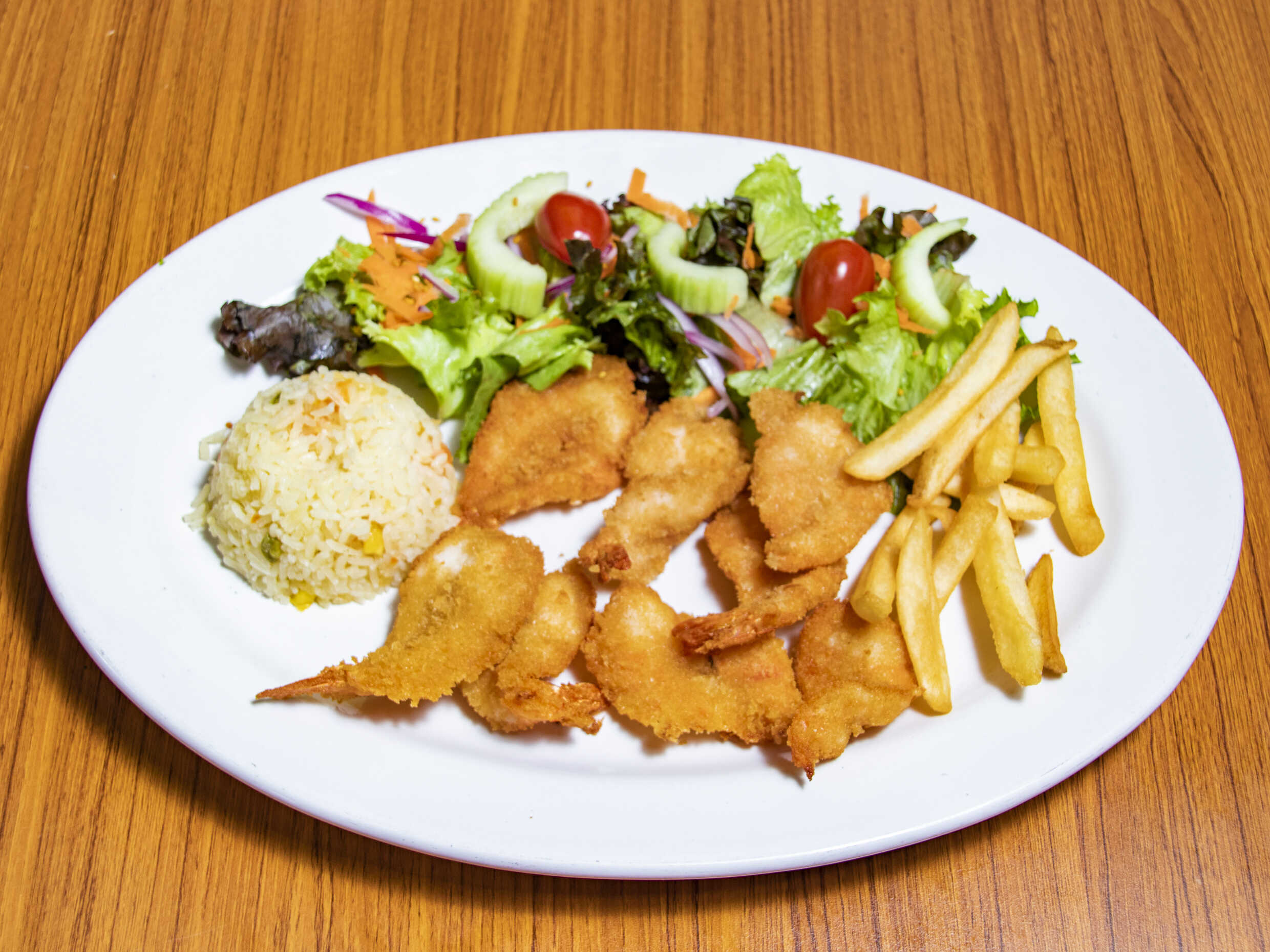 250 Grs. Camarones doraditos muy crujientes, marinados en salsa citricas.