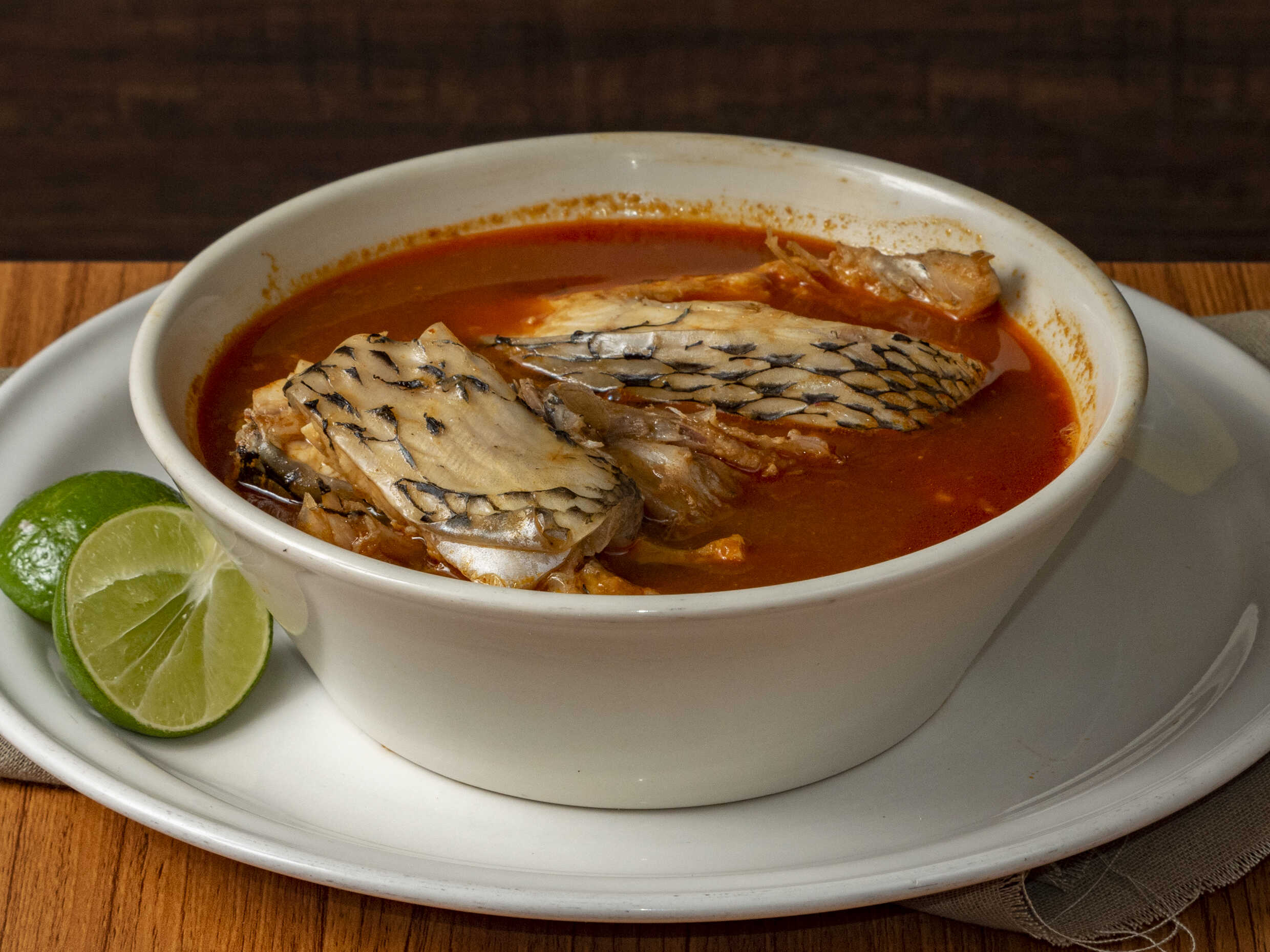 280 Grs. Pescado marinado en salsa con especies, cocidos al carbón, servido en plato de piedra para mantener la temperatura ideal. Acompañado con cebolla a la mantequilla y chiles toreados.