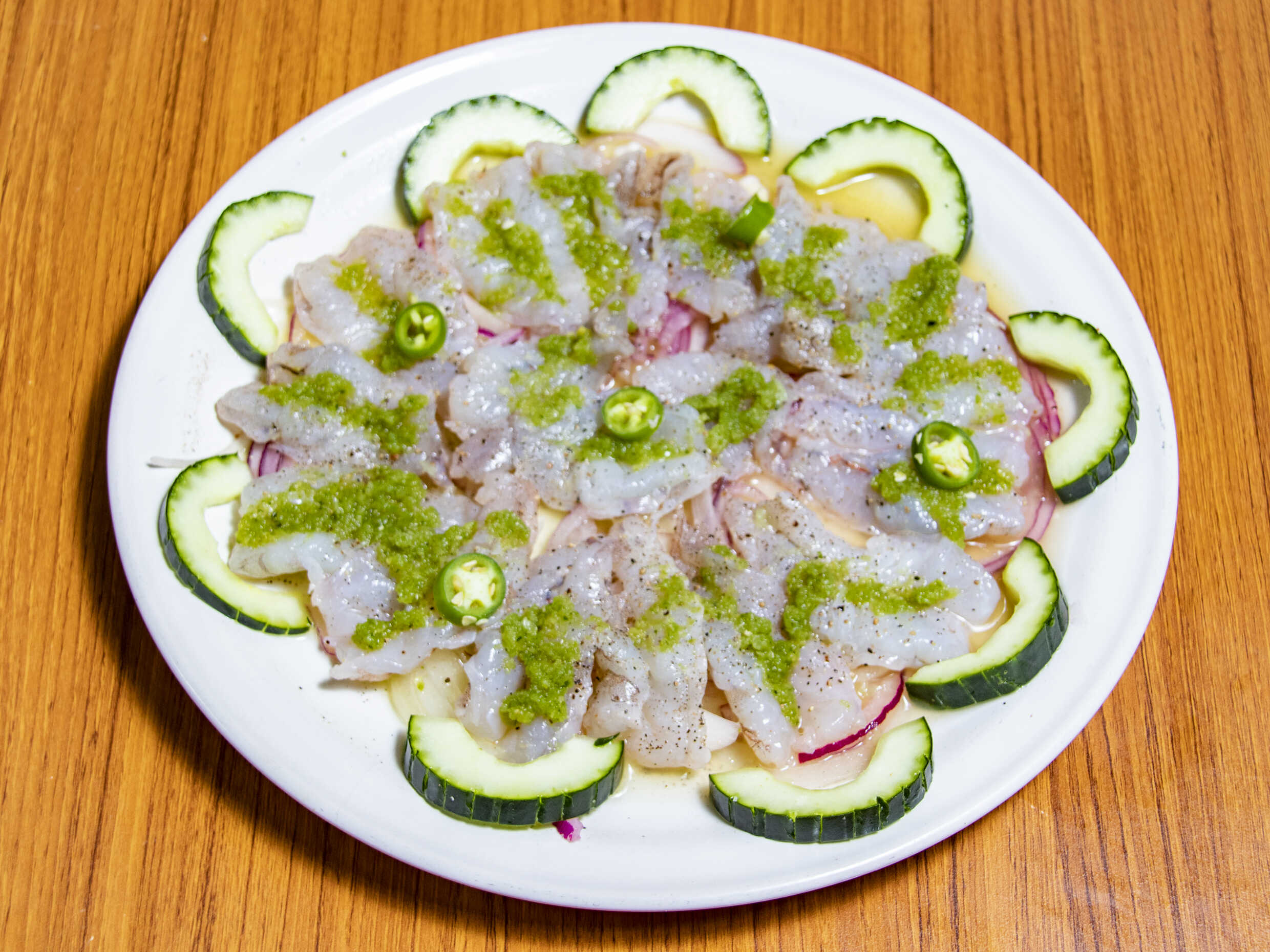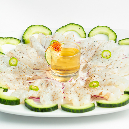 Camarón aguachil, natural con un toque de tequila.