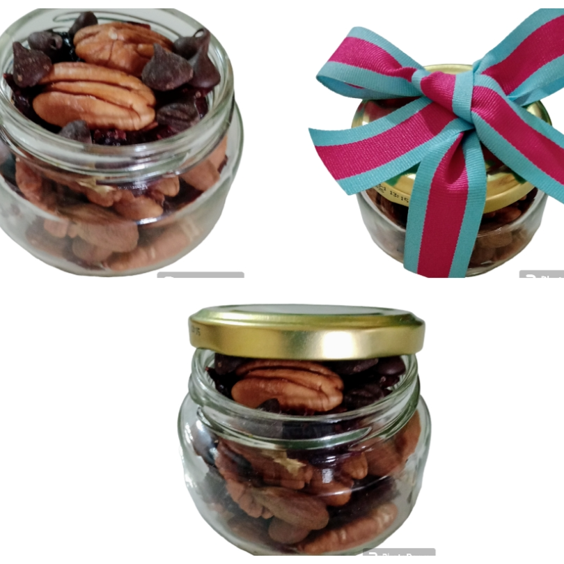 Nueces, Almendras, Arándanos, Pasas, Besos de Chocolate, Cacahuates y Pasas.