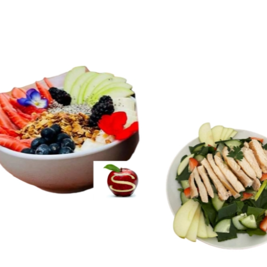 Zarzamora, fresa, arándanos, espinaca y pollo. Todas nuestras ensaladas incluyen cama de lechuga y aderezo.
