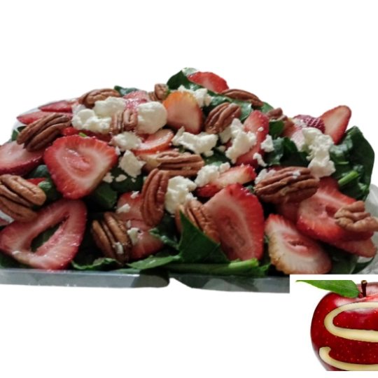 Espinaca, queso, fresa y nuez. Todas nuestras ensaladas incluyen cama de lechuga y aderezo.