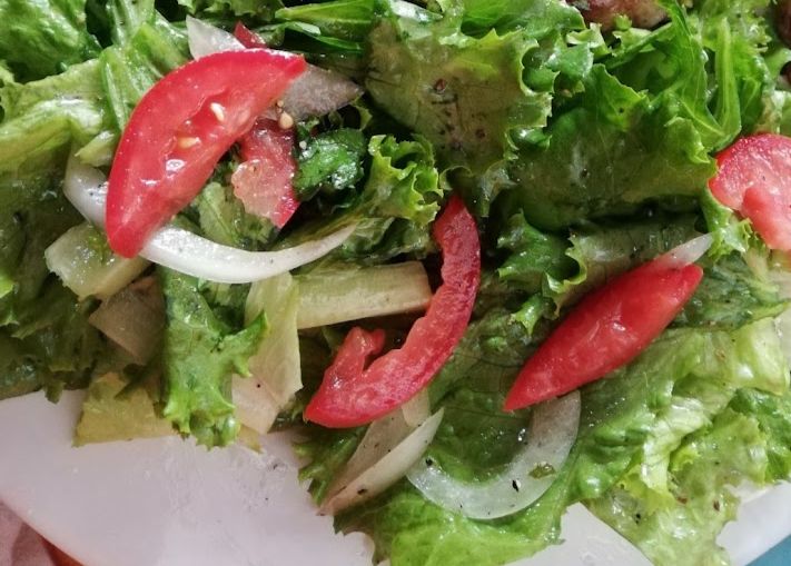 Lechuga, jitomate y cebolla.
