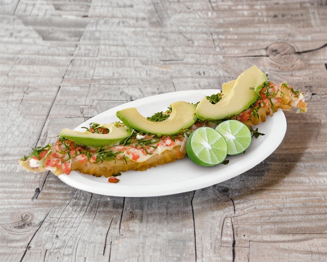 Deliciosa quesadilla de pescado con aderezo,aguacate,cilantro y camaron