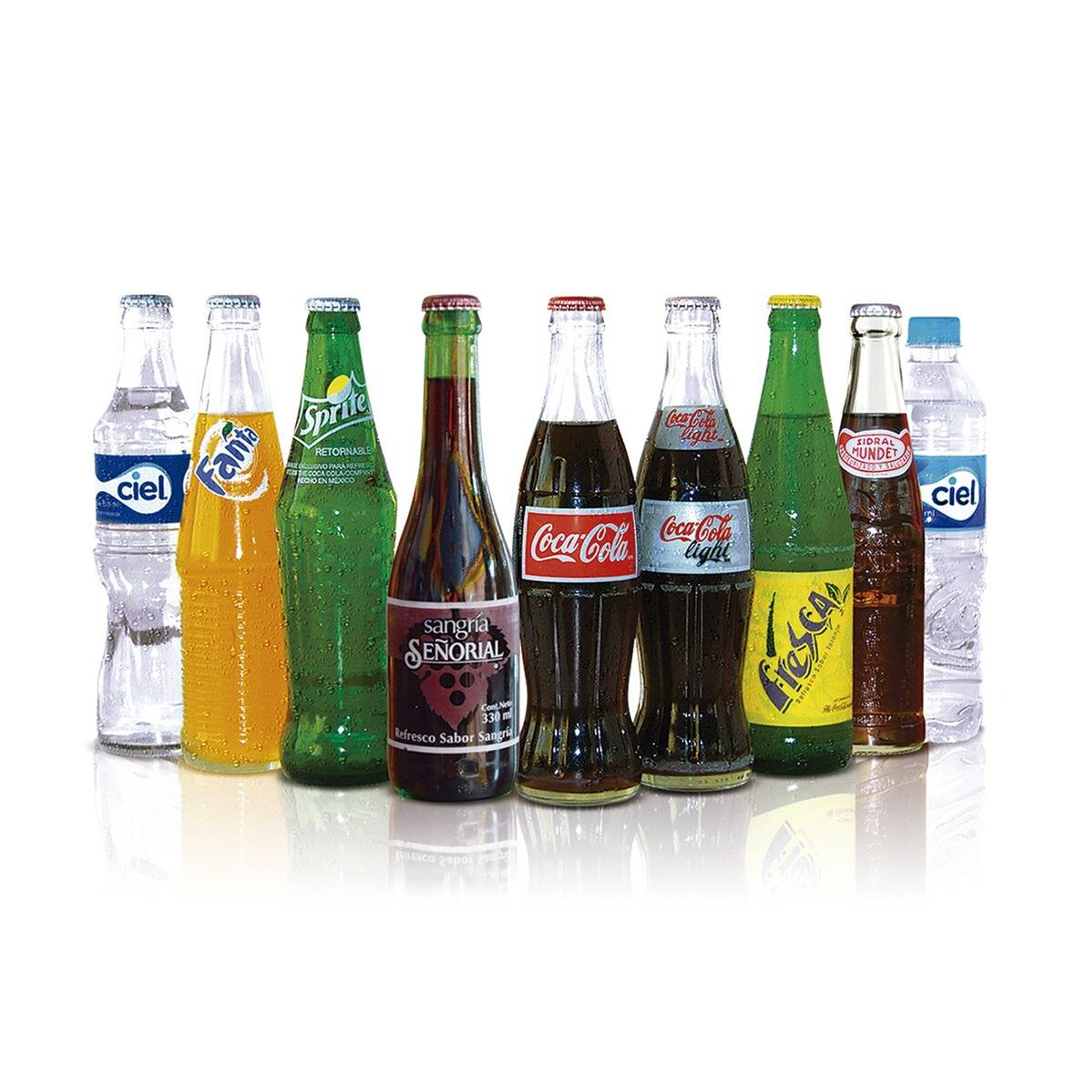 Coca cola, Sangria, Coca cola light, Coca cola sin azúcar, Fanta, Sprite, Fresca, Sidral Mundet.