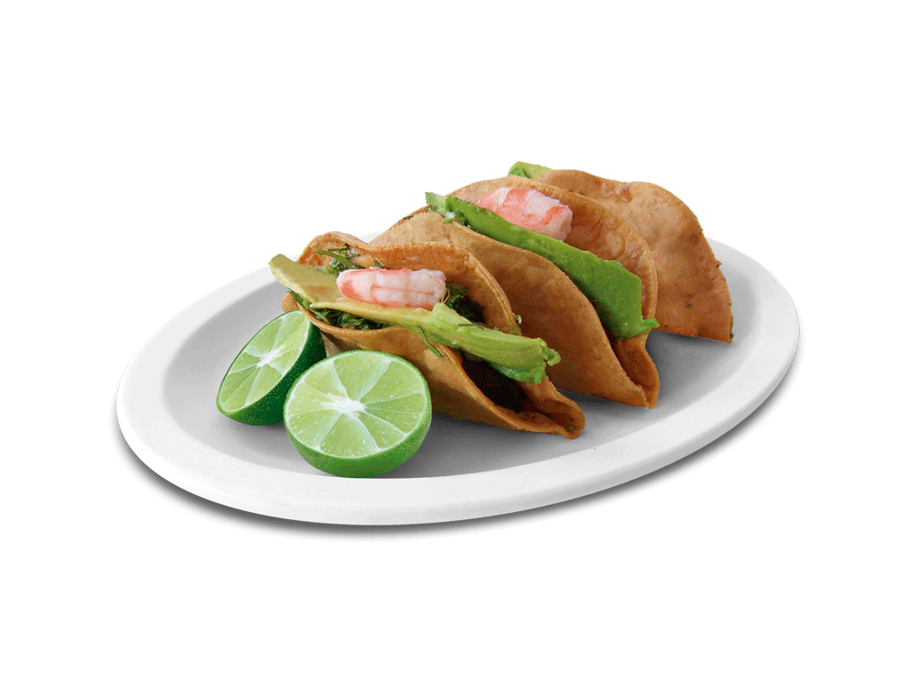 3 deliciosa quesadillas de pescado con aderezo,cilantro,aguacate y camaron