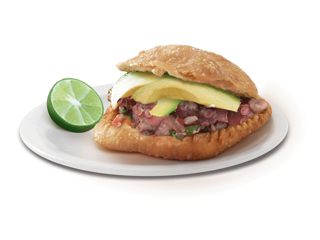 catsup,salsa inglesa,salsa bruja,cebolla,aguacate y pulpo