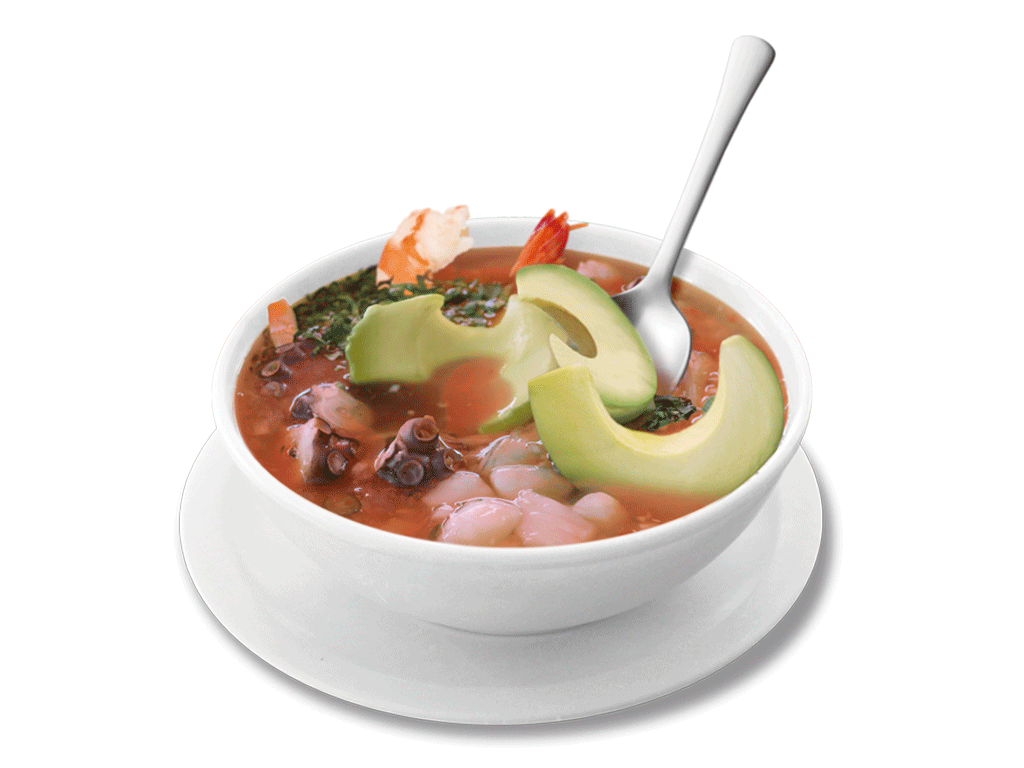 camaron,pulpo,pescado,callo de acha,ostion,surimi,aguacate,cilantro y cebolla finamente picados