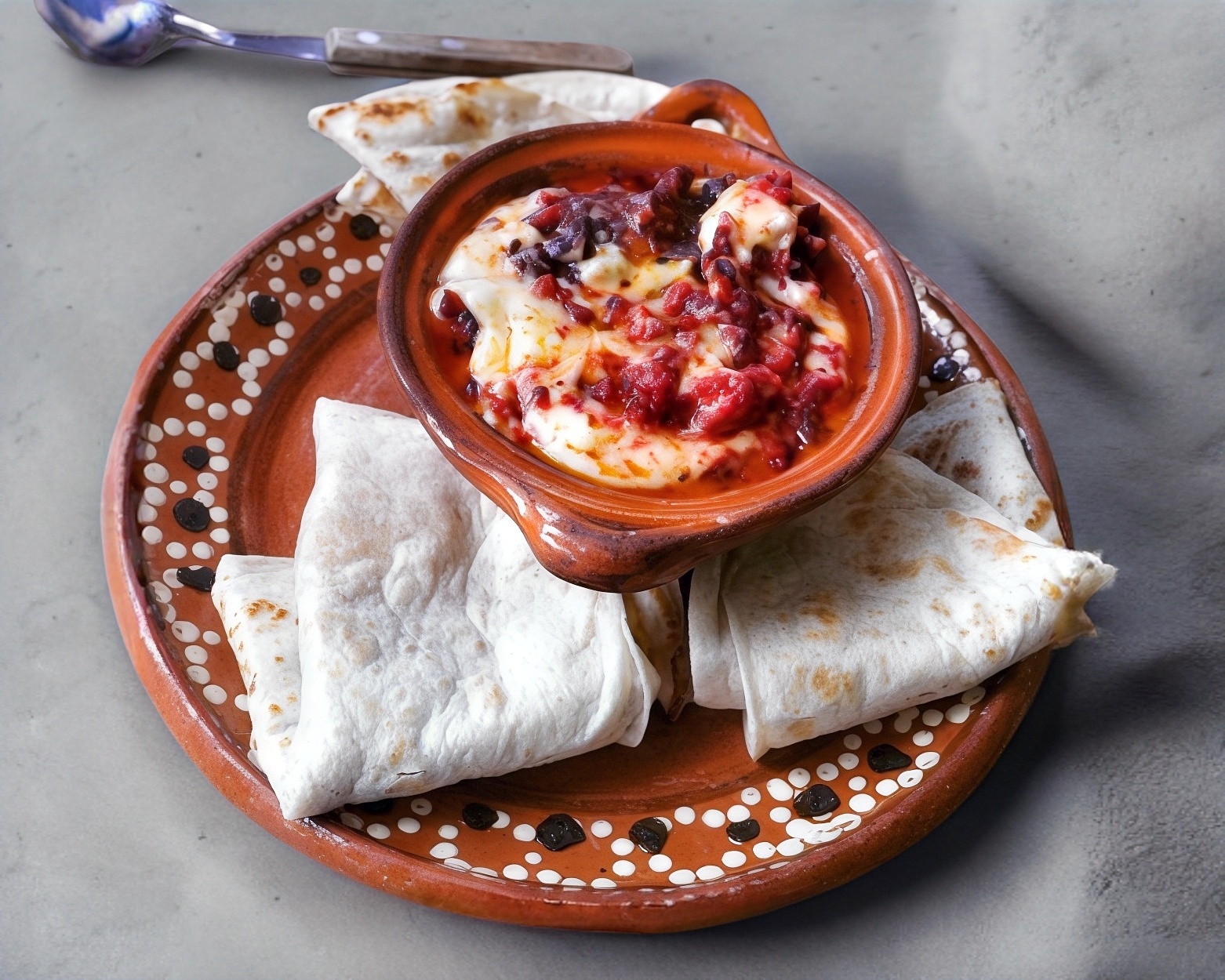 arrachera marinada queso fundido frijoles jitomate cebolla y aguacate