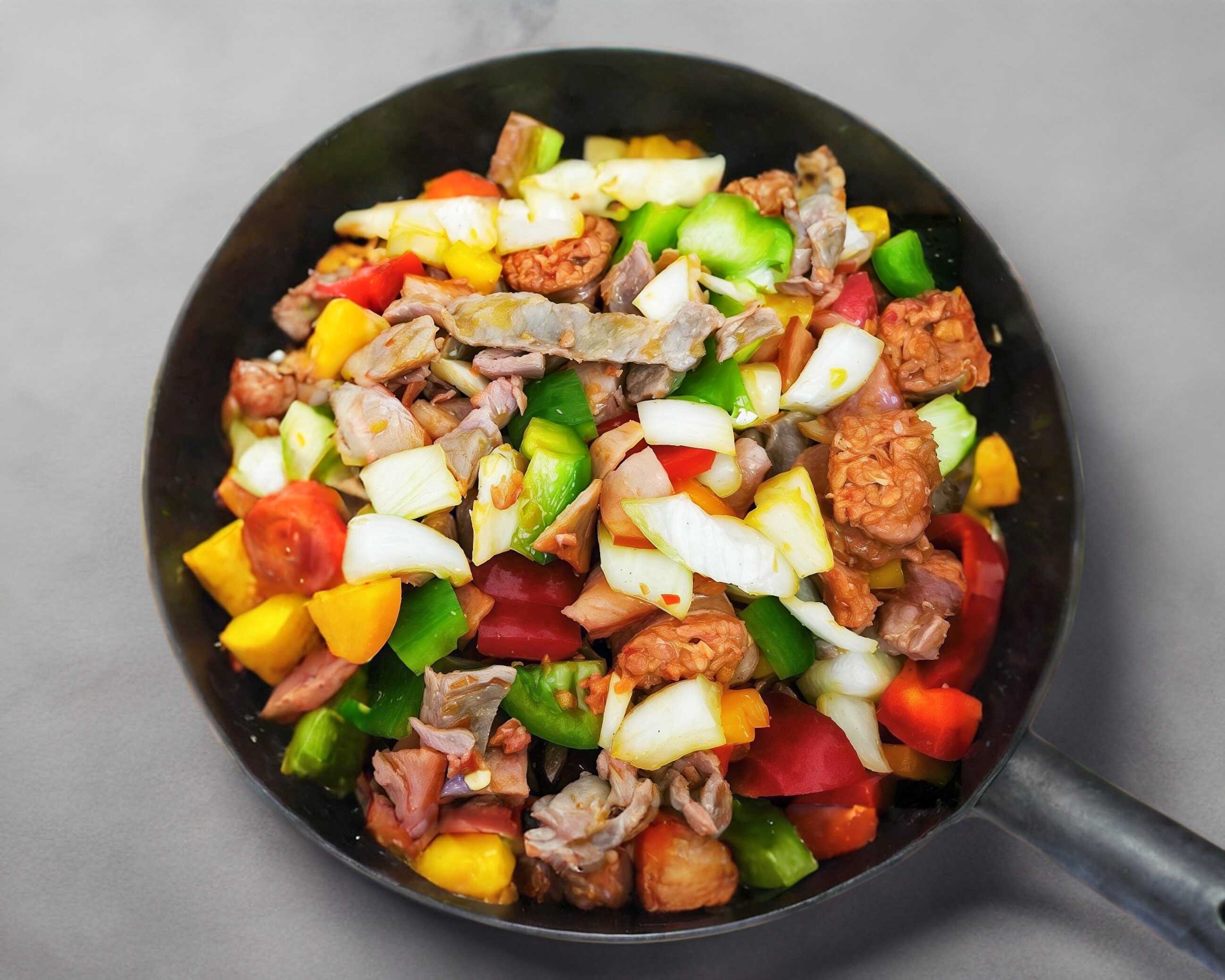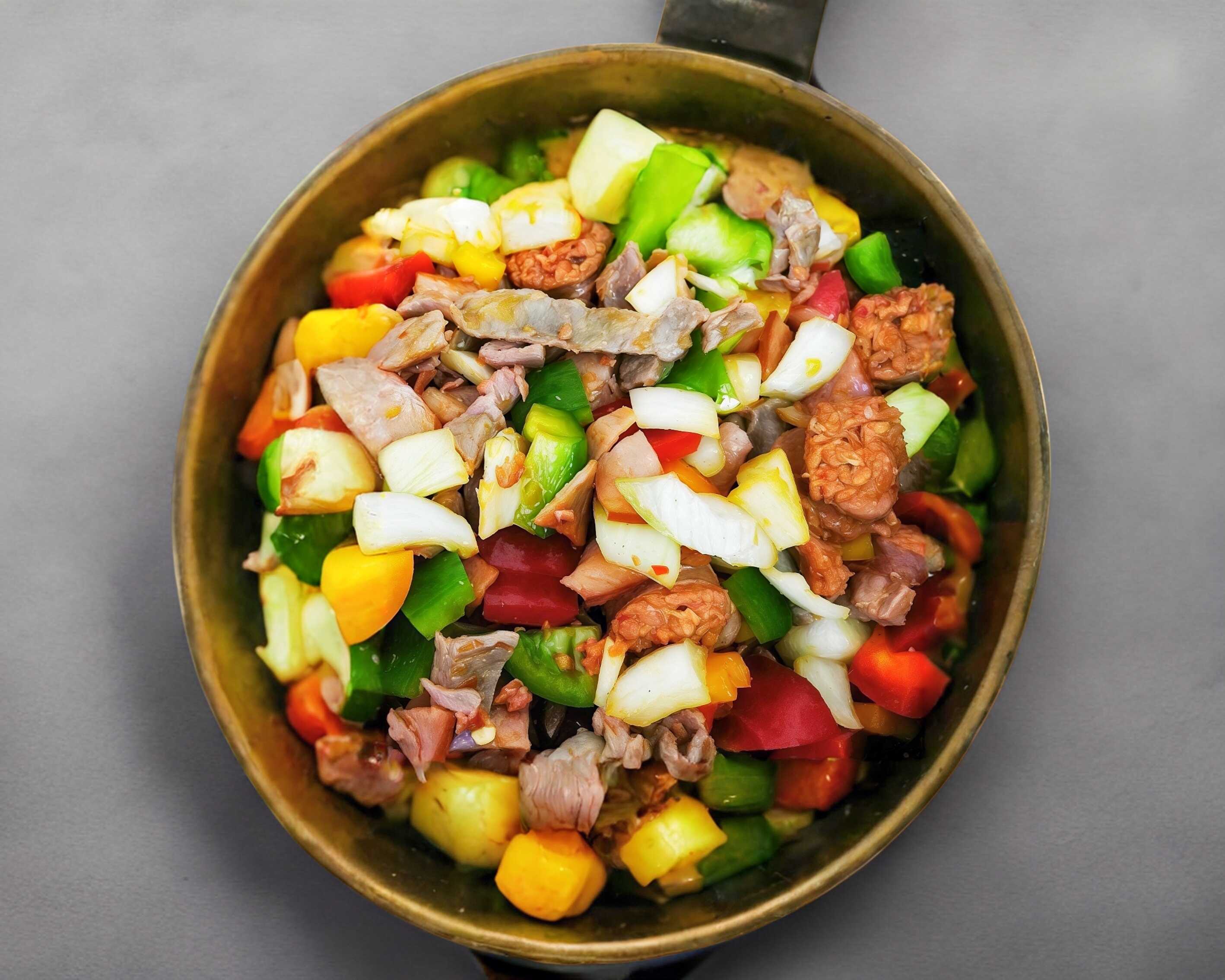 suadero y pastor acompañado con cebolla pimiento morrón y queso fundido además de tortillas