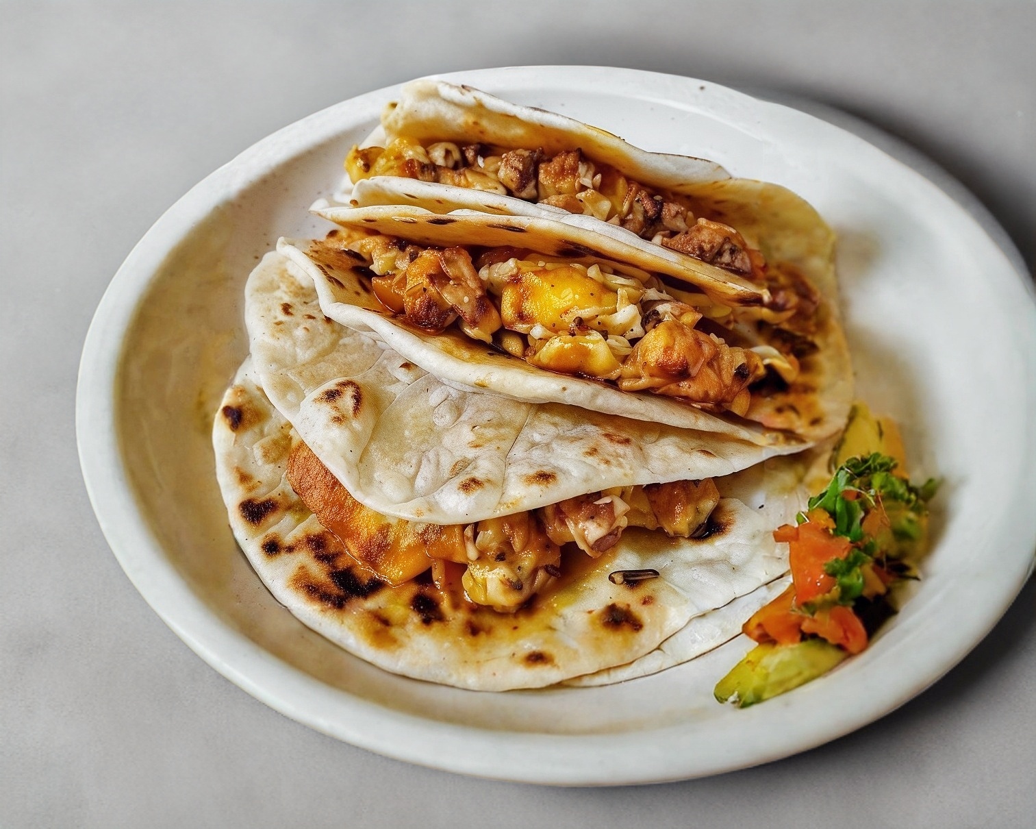 orden de tres piezas en tortilla de harina bistec nopales y queso fundido