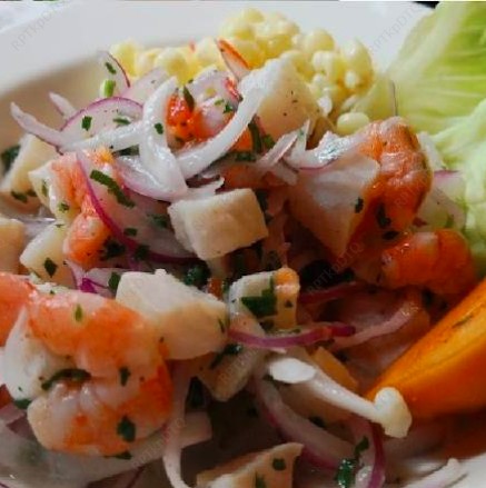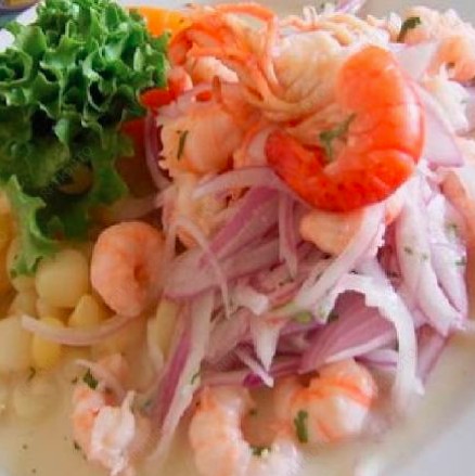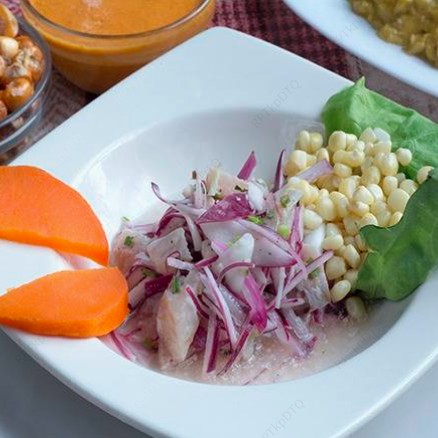 Rey de los platos de los frutos del mar, jugosos trozos filete de pescado, que son macerados en el jugo de frescos limones servidos acompañados de un suculento picado de cebolla, choclo, camote que realza su fino sabor.