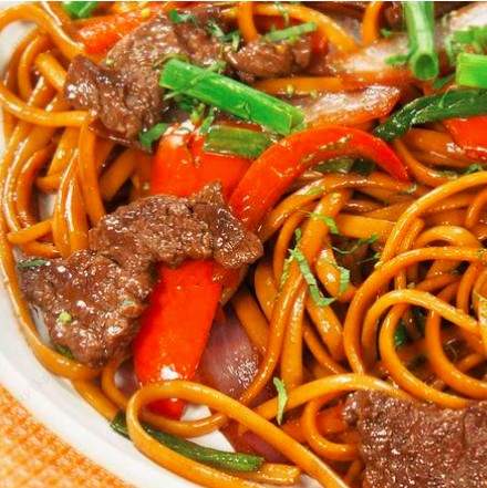 Espagueti Saltado con Res Estilo Peruano