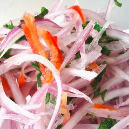 Acompañamiento típico de muchos platillos a base de cebolla morada y cilantro.