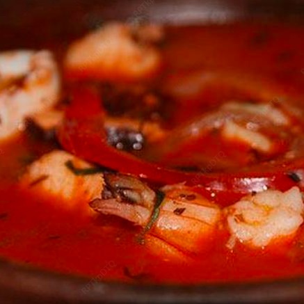 Elaborado con camarones, cebolla morada, jitomate, cilantro picado y vino tinto.